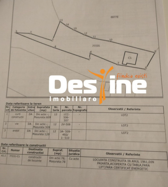 URICANI , CASA 78 MP,TEREN 1250 MP, 69.900 EURO