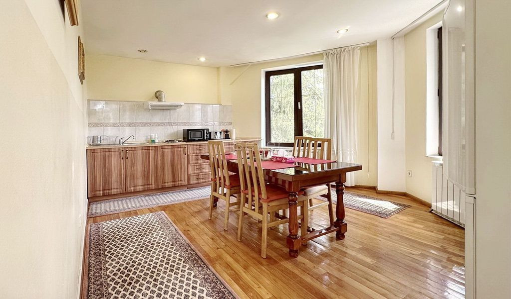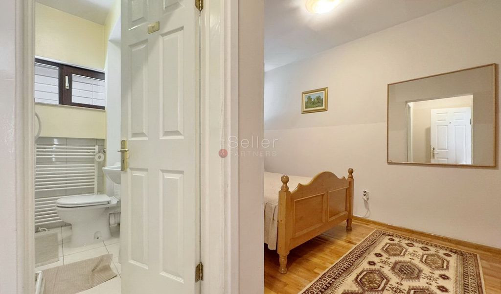 LOCALIZARE: Acest imobil este situat intr-o vila cu 3 apartamente in Predeal in zona centrala a statiunuii. COMPARTIMENTARE: - Holul de acces, care face legatura intre toate incaperile; - Trei dormitoare, dintre care unul matrimonial cu o suprafata generoasa, fiecare avand baie proprie; - Zona de zi, ce este luminioasa si spatioasa; - Bucataria, inchisa, aceasta fiind mobilata si dotata integral; - Toate cele trei bai sunt dotate cu cabina de dus; DOTARI: - centrala termica; - tamplarie PVC, cu geam termopan; - curte si terasa comune, amenajate; - loc de parcare; - foisor amenajat; - utilitati incluse in pretul chiriei; Proprietatea este amenajata intr-un stil elegant, cu materiale premium, aceasta fiind propusa spre inchiriere complet mobilata si utilata. Imobilul este situat intr-o zona de vile, la doar 5 minute de mers pe jos de Primaria Predeal si la 5 min distanta auto de Partia de schi. NOTA: Perioada Minima Inchiriere Acceptata: 12 luni; Comision Intermediere 50%+tva Informatiile prezentate reflecta situatia reala a proprietatii, fara a constitui o oferta contractuala. Aceste date au fost obtinute verbal, de la titularul de drept al imobilului. Structura acestei prezentari nu poate fi reprodusa, fara acordul scris al The Seller and Partners.