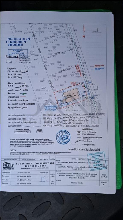 TEREN 464mp cu Autorizatie de Constructie CASA PARTER Ac=123,10mp cu utilitatile: gaz - apa - curent electric, trase la teren.