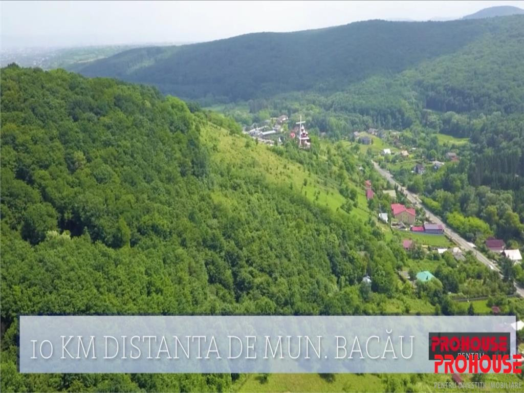 PROHOUSE ofera spre vanzare, in exclusivitate, proprietatea situata in Valea Budului, la 10 km de centrul orasului Bacau, compusa din 10.000 mp teren intravilan, 1.000 mp lac, 5 hectare padure. TOATE SUPRAFETELE SUNT COMASATE SI AU UN SINGUR PROPRIETAR. Proprietatea este pretabila pentru: Sat de Vacanta; Cartier casute week-end Azil Manastire Complex Turistic; Parc Aventura; etc. Utilitati in zona: curent, gaz, apa. Pretul este NEGOCIABIL.. Pentru alte detalii sau vizionare contactati-ma.