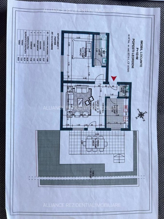 Vand apartament cu 2 camere, decomandat, in Popesti Leordeni, la aproximativ 200 m de Soseaua Oltenitei . Acesta dispune de o suprafata utila totala de 55,59 mp + 15 mp terasa + 90 mp gradina proprie . Se afla la parterul unei vile in care se mai afla inca 2 locuinte . Compartimentare : hol intrare, grup sanitar, bucatarie inchisa, dormitor matrimonial (cu baie) si living cu iesire in curte / terasa . Loc de parcare inclus . Pret : 110.000 euro tva inclus