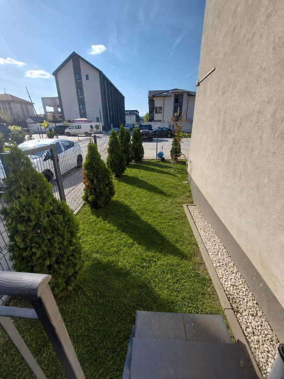 Proprietar, vând apartament cu două camere și curte situat pe Strada Stejarului, Dobroești. Apartamentul are 60 mp, situat la parter și dispune de o curte proprie împrejmuită de 63 mp, cu acces și din stradă și scară exterioară din balcon. Apartamentul are și parcare inclusă și se vinde semi mobilat(mai multe detalii la vizionare). Complexul dispune și de un parc propriu pentru copii. Ca și facilități: -La 5 minute de mers pe jos de capătul autobuzului 343 -la 10 minute de mers pe jos de stația autobuzului 182 -la 5 minute de Froo,easybox și doi pași. Menționez că apartamentul se predă igienizat.