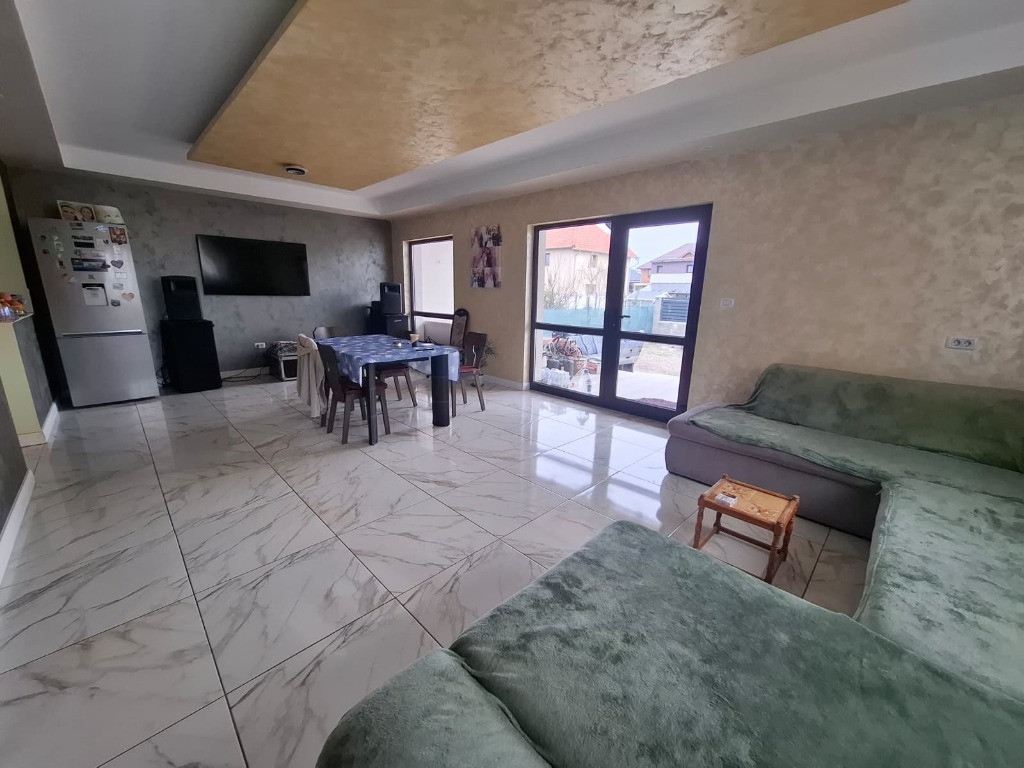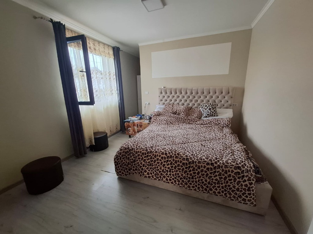 Vând casă 5 camere Vladimirescu, Cartier Europa Se oferă spre vânzare casă spațioasă (construita in 2021) situată în comuna Vladimirescu, în cartierul Europa, zonă liniștită și în plină dezvoltare. Compartimentare: - 4 dormitoare - Living + bucătărie open space - 4 băi - 2 dressinguri - Terasă acoperită - Cameră tehnică Suprafețe: - Suprafață construită: 232 mp - Suprafață utilă: aprox. 200 mp - Teren: 350 mp Dotări și beneficii: - Încălzire în pardoseală - Centrală proprie pe gaz - 2 aparate aer condiționat - Geamuri termopan - Instalații sanitare și electrice noi - Izolație cu polistiren de 10 cm - Se vinde complet dotata și utilată - 3 locuri de parcare în fața casei Proprietatea este ideală pentru o familie care își dorește confort, spațiu generos și o zonă rezidențială modernă, aproape de oraș.
