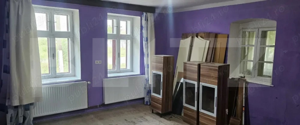 Vand casa situata in comuna Nitchidorf Judetul Timis ,zonă foarte liniștită, înconjurată de natură, ferită de agitația urbană, dar situată la o distanță de 35 km de orașul Timișoara. - 3 camere, -1baie, -1 bucatarie, -1 hol, -1 spait(camera alimente) 1- camera tehnica(centrala lemne+curent,cu pufar) Construita pe o suprafata de 325 mp construiti din care 217 mp utili , -partial renovata -teren 2985 mp teren (gradina,livada pomi fructiferi)cu apa trasa pentru irigare -front stradal 21 m -anexa din caramida la rosu(compartimente pentru ,camera scule,sau pentru gaini,pentru caini) Proprietatea dispune de foraj apa la 100 m(complet cu hidrofor)numai depinzi de apa din sat,e apa potabila de baut -Sau exista si posibilitatea racordarii la retea -fosa septica zidita de 12 mc Sau exista posibilitatea de racordare la canalizare -incalzirea se face pe centrala termica combustibil solid . Terenul dispune de imprejmuire in proportie de 70% de gard sarma inalt de 2 m,livada cu peste 120 pomi fructiferi. Cod ofertă / ID BLITZ: P168792 Id intern: P168792