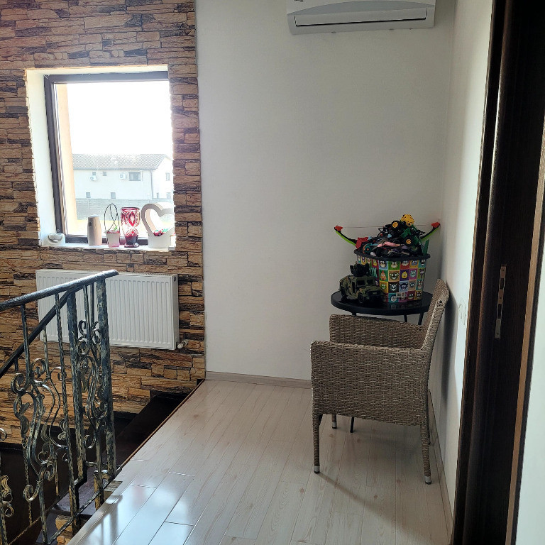 Proprietar, vând vila confortabila, situata intr-o zona linistita lângă padure, ideala pentru familii sau persoane care cauta un loc departe de agitatia orasului dar totusi aproape de facilitati esentiale( Peny, Lidl,STB,Mega). Casa este compusa la parter dintr-un living generos si bucatarie open space cu posibilitate de separare care beneficiaza de lumina naturala pe tot parcursul zilei, si o baie de serviciu,. La etaj se afla 3 dormitoare , balcon si o baie spatioasa. Pentru zona de relaxare casa beneficiaza de o terasa deschisa, foisor, grătar, cascada. Toate utilitatile, A.C.,6 camere video, 4 locuri de parcare, porti automate, beci 12 m2 cu puț in interior. Clasa energetica A Suprafata utila 141 m2 Suprafata terenului 585 m2 Numar camere 4 camere Suprafata construita 160 m2 Numar bai 2 Anul constructiei 2015 Incalzire centrala proprie Structura de rezistenta caramida + beton Invelitoare acoperis Tabla Numar balcoane 1 Numar terase 1 Suprafata terase 12 m2 Sistem incalzire Calorifere, Centrala proprie Acces internet Fibra optica Stare interior Buna Ferestre cu geam termopan PVC Jaluzele Verticale Usa intrare PVC Izolatii termice exterior expandat 10cm, Parchet Usi interior Lemn, Bucatarie Mobilata, utilata Contorizare Apometre, Contor gaz Mobilat Complet Electrocasnice Aragaz, Cuptor cu microunde, Frigider, Hota, Masina de spalat rufe, Scara interioara Supraveghere video