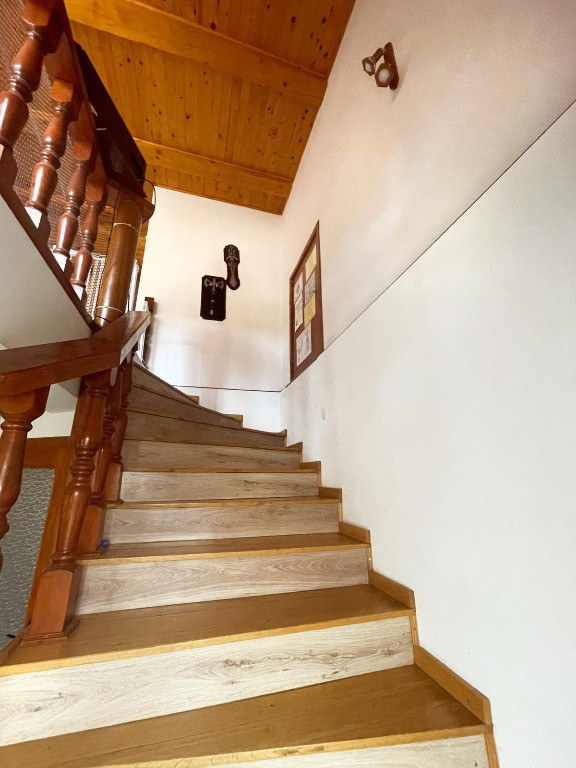 Vand casa in Deva compusa din doua corpuri, zona Calugareni partea de jos, suprafata totala de teren 2085 mp, acces auto in curte, suprafata construita desfasurata totala 243 mp, constructie de caramida si BCA, izolata exterior, acoperita cu pod si tigla, renovata si amenajata cu centrala termica pe gaz, termopane, gresie, faianta, parchet. Primul corp este pe un singur nivel, constructie din anul 1962, are suprafata construita de 100 mp, este compus din: 3 camere, bucatarie, hol, baie si beci. Al doilea corp, P+E, SC: 84 mp, 42 mp/nivel, este lipit de primul corp, are intrare separata, este construit in anul 1999 si este compus la parter din: living cu bucatarie deschisa si baie si la etaj din dormitor baie si balcon. Proprietatea dispune de o bucatarie de vara de 59 mp lipita de corpul 2. Proprietatea se vinde mobilata si utilata integral. Pret: 185 000 euro neg. Tel: 0724 293226. Mai multe detalii, VIDEO si poze la Agentia Imobiliara Ovidiu Deva sau pe www.apartamentedeva.ro.