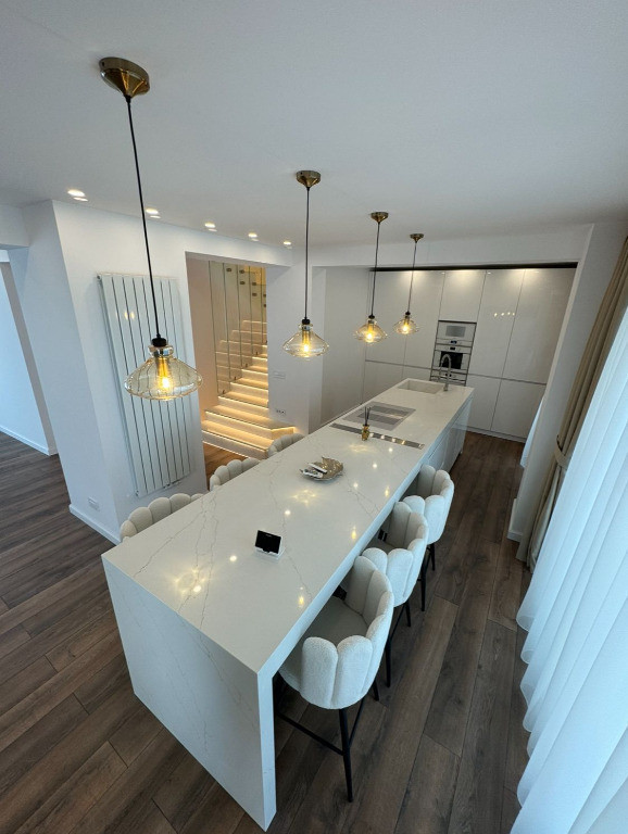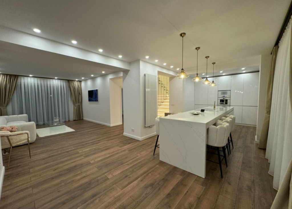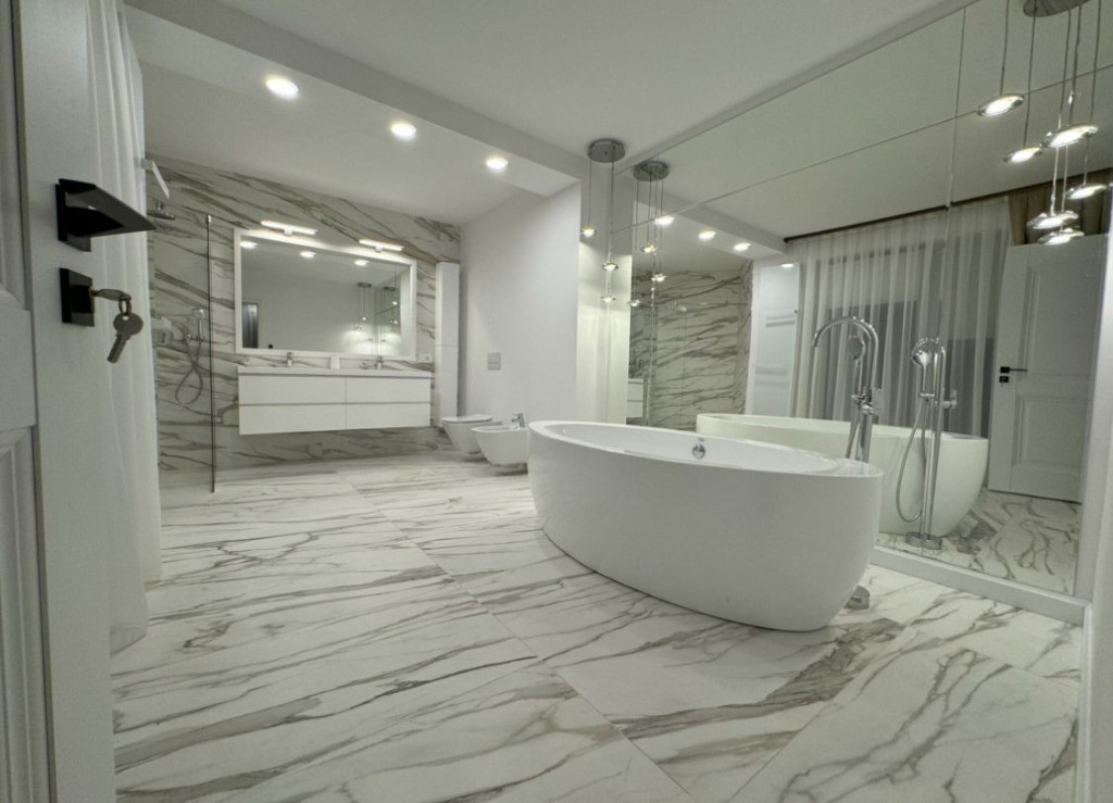 Vand casa in Deva D+P+E, zona centrala (Marasti), suprafata construita desfasurata 375 mp, suprafata teren 425 mp, acces auto in curte, renovata, amenajata si modernizata in totalitate in anul 2024. Este compusa la demisol din 5 incaperi; la parter din: living cu bucatarie deschisa, dormitor, 2 bai, balcon si terasa inchisa. La etaj din: 3 dormitoare, 2 bai si balcon. Proprietatea dispune de toate utilitatile si se vinde semimobilata. Pret: 468 000 euro neg. Tel: 0724 293226. Mai multe poze si detalii pe www.apartamentedeva.ro sau la Agentia Imobiliara Ovidiu Deva.