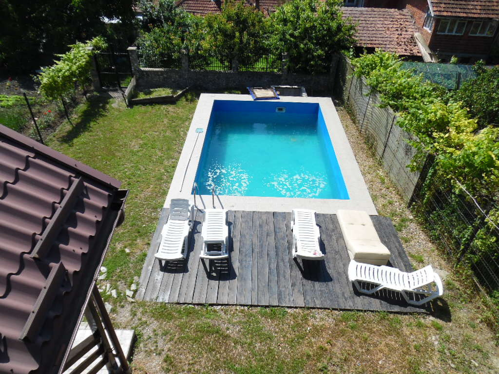 Vand casa in Deva, zona Calugareni, partea de jos, D+P+M, amprenta la sol de 88 mp, suprafata construita aproximativ 220 + 4 terase, suprafata de teren 1700 mp, latime de 14 metri, constructie de caramida izolata exterior cu polistiren de 10 cm, centrala termica pe curent, tamplarie din lemn stratificat cu geam termopan tripan, usi interioare din lemn stratificat, gresie, faianta, parchet, calorifere de aluminiu, amenajata modern. Casa este compusa la demisol din: Camera centralei + o crama de aproximativ 45 mp. La parter: Living, hol, bucatarie, baie de servici si 2 terase mari. La mansarda: 3 dormitoare, baie, hol si 2 terase mari. Curtea este dotata cu piscina, filigorie cu beci, anexe gospodaresti, gazon si gradina in partea din spatele casei. Accesul in curte se face doar pietonal printr-o intrare comuna cu sevitute de trecere. Pret: 270 000 euro neg. Tel: 0724 293226. Mai multe poze si detalii pe apartamentedeva.ro sau la Agentia Imobiliara Ovidiu Deva.