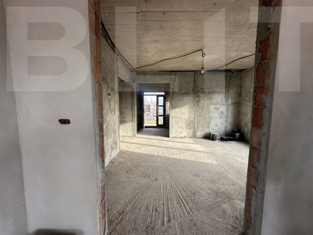 • Parter: living luminos, bucătărie separată, grup sanitar, hol de acces, scară interioară și terasă.