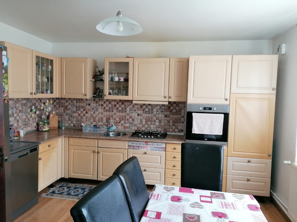 Incalzirea casei se face cu centrala pe gaz si se vinde complet mobilata si utilata.