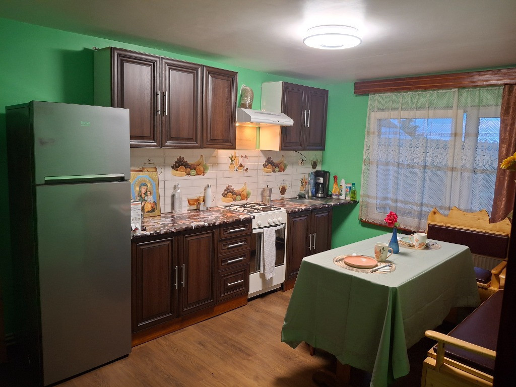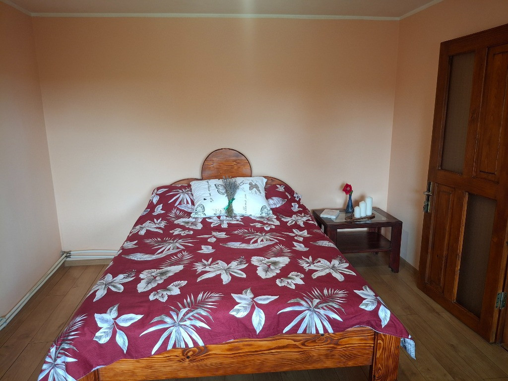 Casă de familie, primitoare, solid construită și atent întreținută, situată la doar 15 minute cu mașina de centrul municipiului Botoșani și la distanță convenabilă de Aeroportul Suceava (40 min) și Aeroportul Iași (88 min). Această casă – și aproape tot mobilierul din ea – au fost construite, cu răbdare și pricepere, de tatăl nostru, singur-singurel. A plecat dintre noi mult prea brusc, lăsând neterminată mansarda pe care o visa ca spațiu de tihnă și lumină pentru vizita nepoatelor lui. Casa păstrează în ea toată grija și dăruirea lui. Suprafață: 1.644 mp - Suprafață casă: 88 mp - Atelier: 50 mp - Garaj: 21 mp - Coteț pentru găini: 27 mp - Teren arendat suplimentar: 0,1188 ha (contract valabil până în 2061) Despre casă: - Construită din lemn, placată cu plăci OSB (interior & exterior) și izolată cu vată bazaltică – ideală atât iarna (călduroasă), cât și vara (răcoroasă). - Instalație electrică ignifugă și centrală termică pe lemne -Apă caldă la baie (cu robinet electric) - Semi-mobilată, cu dotări incluse: cabină de duș, mașină de spălat Clasa A +++, aragaz cu butelie + rezervă plină, frigider, hotă, mobilă bucătărie, colțar + scaune din lemn, pat + saltea de calitate superioară, dulap, măsuță, TV. Compartimentare eficientă: - 2 camere: 14 mp și 25 mp - Bucătărie: 14 mp - Baie: 6 mp - Hol: 4 mp - Verandă generoasă: 12 mp - Cămară pentru depozitare - Pod înalt, pregătit pentru mansardare – cu 2 ferestre termopan, perfect pentru încă 2 camere Finisaje și dotări: - Parchet melaminat în camere, hol și bucătărie - Gresie în baie și verandă - Uși interioare din lemn, uși exterioare și ferestre mari, din termopan - Intrare separată pentru camera mare Anexe și curte: - Garaj (21 mp) - Atelier de tâmplărie amenajat în fostul grajd, clădire separată, din chirpici cu acoperiș de azbociment - Coteț pentru găini (27 mp) - Beci generos (7 mp) pentru provizii - Fosă septică și hidrofor funcțional - Fântână de 20 m adâncime și 10 m luciu de apă - Conducta de apă publică trasă până la poartă – racordare ușor de realizat Teren & grădină: - Curte cu gazon, în față - Teren agricol, livadă cu pomi fructiferi și viță de vie, în spate - Loc liniștit, ideal pentru familii sau retragere în natură, cu drum principal asfaltat și străzi secundare aflate în plan de modernizare Mai multe imagini, aici: https://drive.google.com/drive/folders/1FbPu7YhGS-_Qqx_y7o96pr1mkbEz5kai?usp=sharing