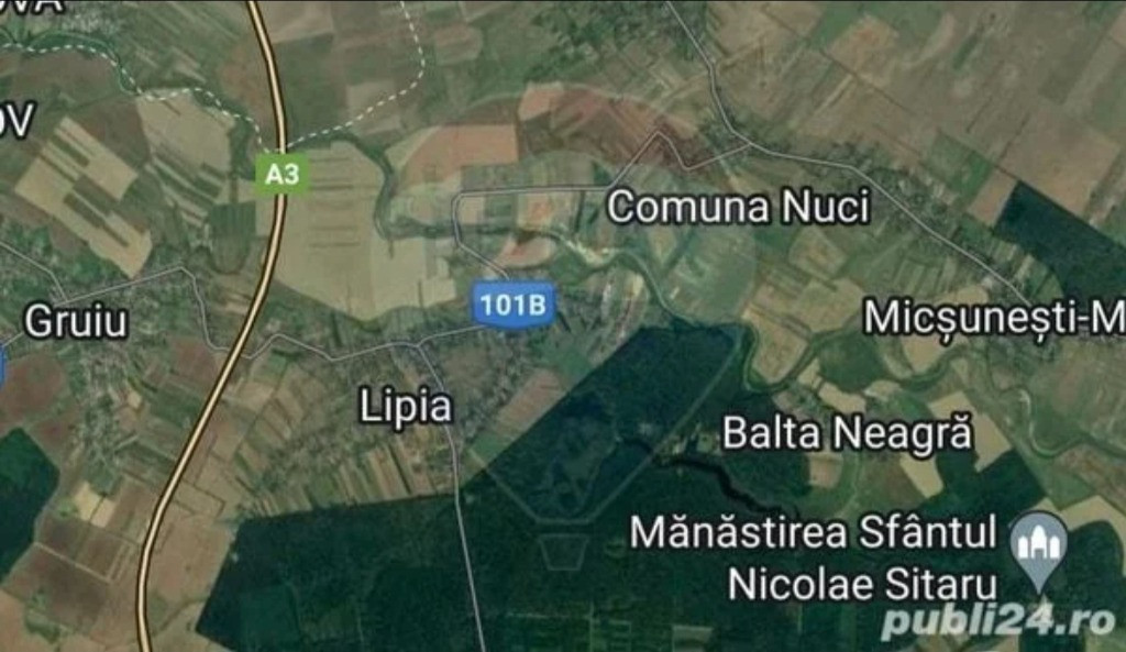 Vand teren in suprafata de 15.000 mp extravilan IF Com. Nuci Sat Balta Neagra. Terenul se afla in vecinatate cu satul si are o latura in vecinatatea padurii. In apropriere se afla si raul Ialomita, o zona foarte linistita cu aer curat ideal pentru investitii. Distant 40 km fata de Bucuresti. Acces din autostrada A3 (Km36), 5 min. de mers cu masina. Acces cu STB nr. 447 de la Piata Presei Libere.