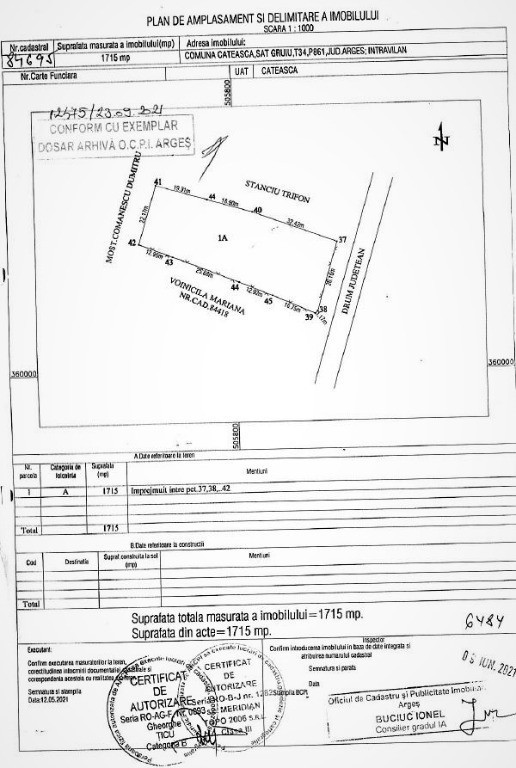 Teren intravilan 1715 mp la 15 min. de Pitesti cu acces dinspre A1A1