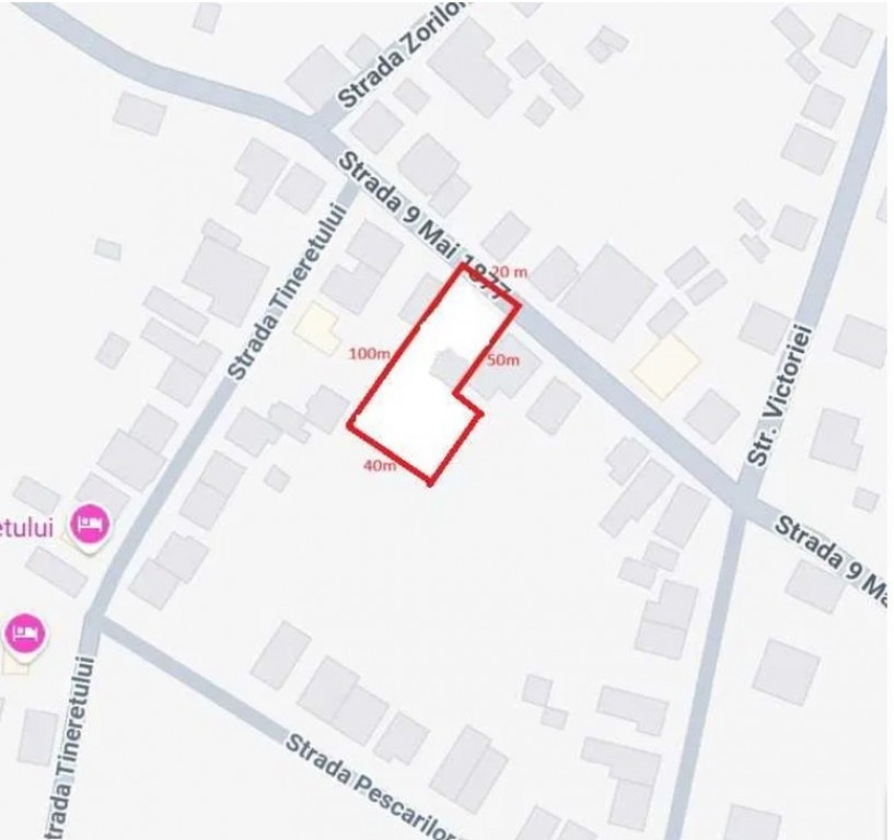 Vand teren intravilan, 2300 mp, compact , strada 9 mai 1877 , localitatea Satu Mare, jud. Satu MAre , La strada -20m ,Lungime 1 - 50 m, Lungime 2 -100 m , latime spate -40m . Utilitatile introduse - apa, gaz ,canalizare. Pretul afisat este negociabil. DEAL DEDICAT DEZVOLTATORILOR.. Pret deschis negocierii.