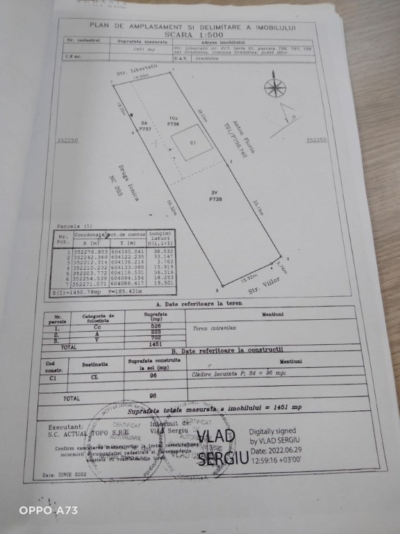 Vand teren intravilan in comuna Gradistea, jud Ilfov, strada Viilor, paralela cu Strada Libertatii. Suprafața 600 mp, apa si canalizare, stâlpi de curent la distanta mica de teren. Drumul de acces este asfaltat. Aproape de Autostrada A0