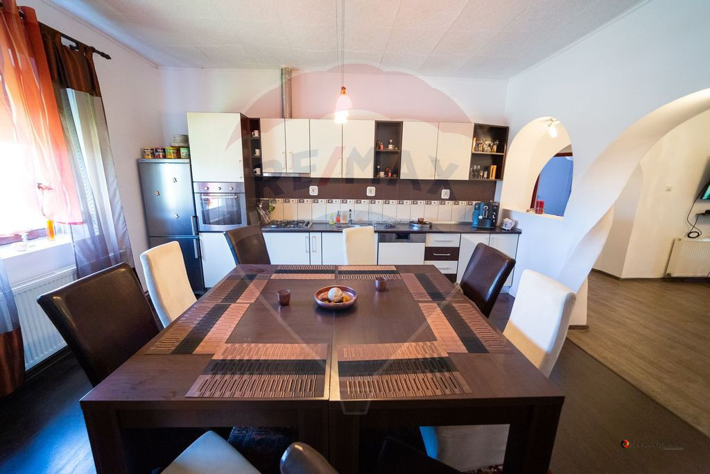 RE/MAX Dynamic oferă la vânzare, în reprezentare exclusivă și fără comision pentru cumpărător, o casă tip duplex veche, renovată complet, situată în localitatea Turnu, la doar 10 minute de Arad. Proprietatea are 150 mp construiți, aproximativ 120 mp utili și un teren de 500 mp. Compartimentare: Living spațios cu șemineu, 2 dormitoare, bucătărie open space, baie cu fereastră, hol, cameră tehnică, debara și magazie. Dotări: - Piscină proprie cu sistem de încălzire și filtrare - Construcție solidă: cărămidă, fundație rezistentă, acoperiș din țiglă - Ferestre termopan - Centrală pe lemne + calorifere - Șemineu funcțional - Curte amenajată cu acces auto, spațiu verde și pomi fructiferi Opțiuni de tranzacționare: Se acceptă schimb cu apartament cu 2 camere în Arad + diferență. Pentru detalii suplimentare, vă rog să mă contactați telefonic.