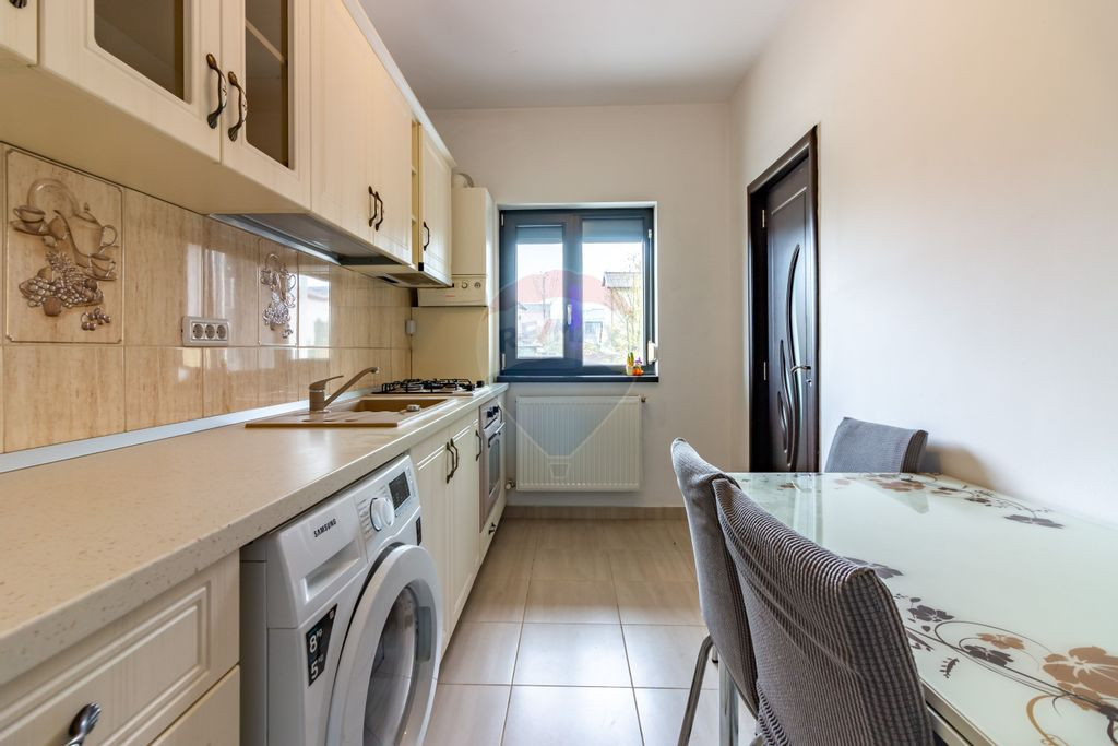 Descoperă confortul unei vieți liniștite la periferia orașului București, în localitatea Bragadiru. Această zonă rezidențială oferă un cadru plăcut și securizat, ideal pentru familii. Locuința se află aproape de facilități esențiale precum școli, magazine și transport public, garantând accesibilitatea necesară unui stil de viață modern și comod. Casa, construită în 2016, beneficiază de un regim de înălțime P+1E+Pod și este parte dintr-un complex de case înșiruite care asigură un sentiment de comunitate și siguranță. Locuința este bine izolată, având un consum redus de energie și oferind astfel avantaje economice pe termen lung. Cu o suprafață utilă de 74,56 mp, casa este decomandată, asigurând intimitate și spațiu suficient pentru toate necesitățile unei familii. Parterul găzduiește un living generos și o bucătărie modernă, iar etajul cuprinde dormitoarele, loc completat de un pod spațios pentru depozitare. În spatele casei se află o curticică de 24 mp, perfectă pentru momente de relaxare în aer liber. Beneficiază de două locuri de parcare supraterane, situate în fața imobilului, oferind comoditate și siguranță suplimentară. Proprietatea se vinde mobilată, astfel încât să te poți muta fără griji și să te bucuri imediat de noua ta locuință. Nu rata șansa de a avea un cămin modern și practic în Bragadiru! Contactează-ne pentru mai multe informații sau pentru a programa o vizionare. Caracteristici privind perfomanța energetică: Clasa energetică: A Consum anual specific de energie primară: 107,18 Indice de emisii echivalent CO_2: 20,51 Consum anual specific de energie din surse regenerabile: 0,00