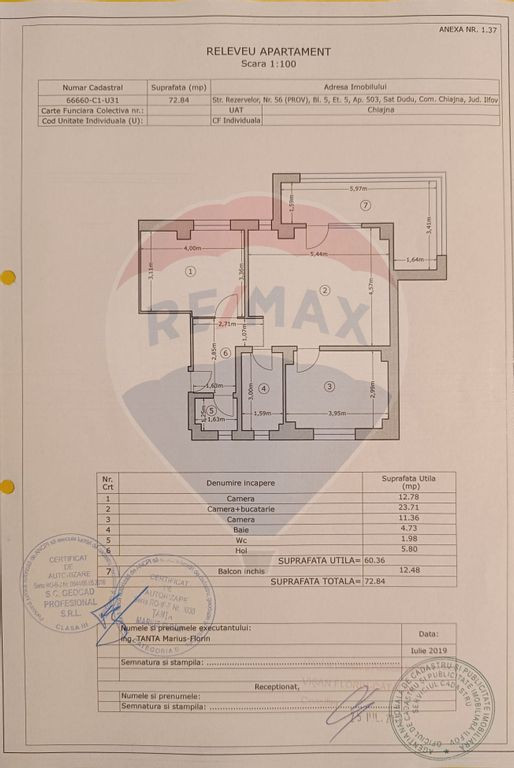 Apartament 3 camere de vânzare – Str. Rezervelor 56, Militari Residence | Mobilat și utilat complet Vă propunem spre vânzare un apartament spațios și modern cu 3 camere, situat în cartierul Militari Residence, pe Strada Rezervelor nr. 56, într-un bloc construit în 2019, stradal, cu multiple spatii comerciale, magazine, restaurante in imediata apropiere. Locuința se află la etajul 5 din 6, într-un imobil aerisit, cu doar 5 apartamente pe nivel, oferind liniște și intimitate. Apartamentul beneficiaza de lumina naturala din plin, livingul fiind orientat pe nord-vest, in timp ce dormitoarele sunt orientate pe sud. Caracteristici principale: Suprafață totală: 73 mp Compartimentare eficientă: living generos de 24 mp, 2 dormitoare spatioase, o baie mare, complet echipata, avand inclusiv geam ( aerisire naturala) si o baie de serviciu Complet mobilat și utilat – gata de mutare Centrală termică proprie + aer condiționat pentru confort termic sporit Finisaje moderne, mobilier de calitate, electrocasnice incluse Posibilitate de transfer a unui loc de parcare privat, inchiriat Apartamentul este ideal atât pentru locuit, cât și pentru investiție. Acces rapid la statia de STB, aprox. 200 de metri si 2 km de metrou Preciziei PRET: 109.900 EURO. COMISION ZERO! Nu rata ocazia, vino sa il vezi si sa devina al tau! Suna la 0799197503 si programeaza acum o vizionare!