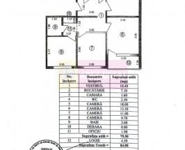 Apartamentul are 2 grupuri sanitare si mai multe spatii de depozitare: o camara aflata in bucatarie, unul pe holul de langa baie si o boxa mare la subsol. Balconul aflat in dreptul dormitorului mare, este stil logie si este inchis cu termopan.