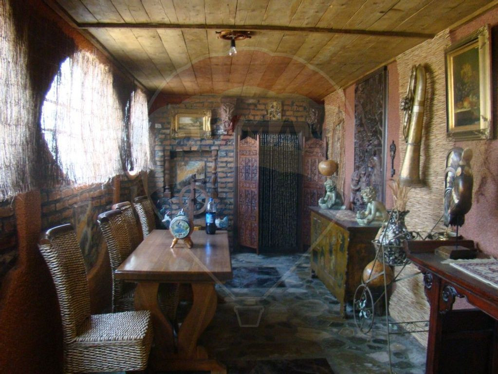 Conac in stil Baroc, cu basoreliefuri atat la exterior cat si la interior, suprafata utila 260mp, 3 dormitoare, bucatarie si loc de luat masa, 2 bai, 2 holuri, garaj cu terasa deasupra si un pod locuibil ce necesita amenajare - complet mobilat si utilat cu mobilier stil.