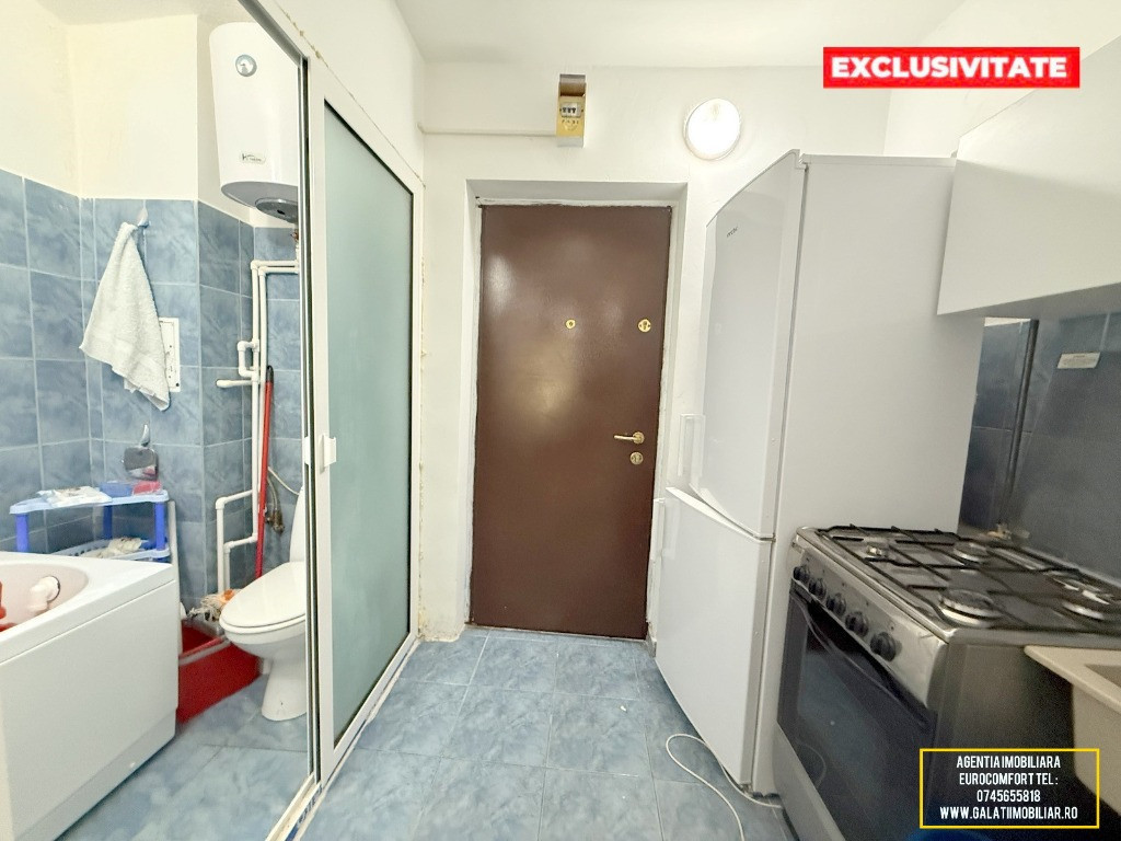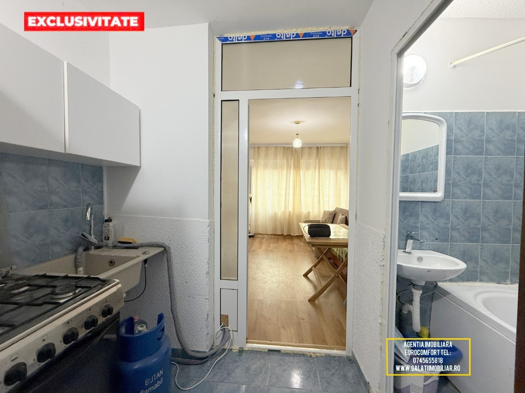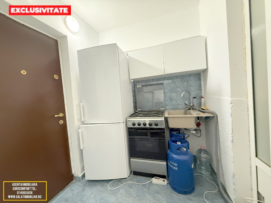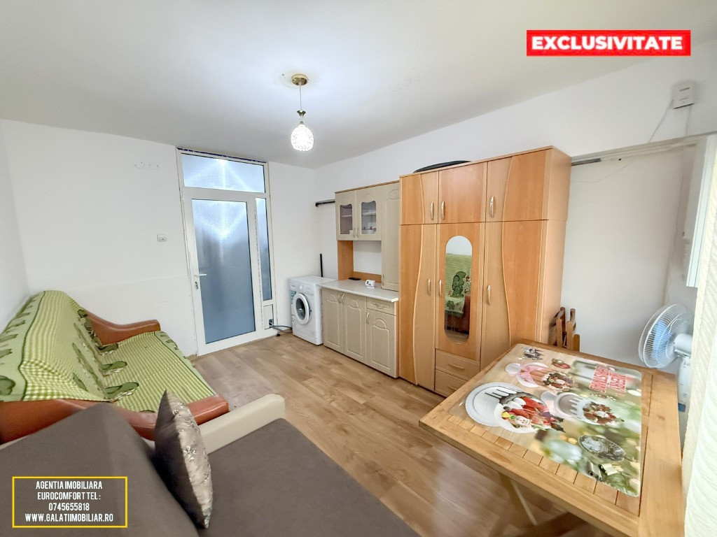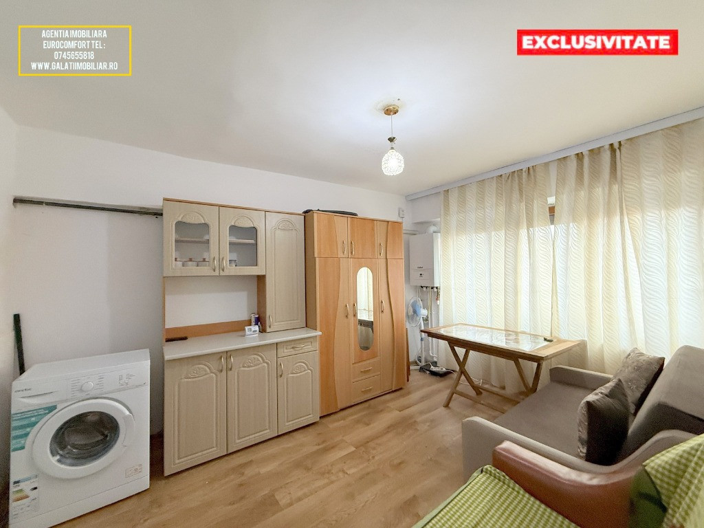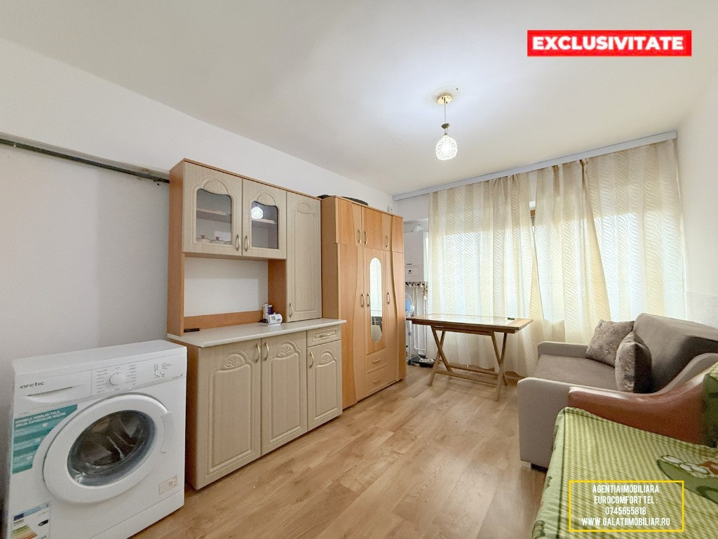 Vă prezentăm spre vânzare o garsonieră cochetă și eficientă, situată în Galați, cartierul I.C. Frimu, într-o zonă liniștită (fosta incintă a fabricii Munca și Arta). Această proprietate reprezintă o soluție excelentă atât pentru locuit, cât și pentru segmentul de închirieri, fiind gata de mutare imediată. Caracteristici principale: Suprafață: 18.2 mp, optimizați pentru confort. Poziționare: Parter – acces facil și rapid. Sistem de încălzire: Centrală termică proprie pe gaz, cu întreaga instalație nouă, asigurând costuri reduse de întreținere și confort termic optim. Dotări și Finisaje: Garsoniera a fost renovată și dispune de îmbunătățiri de calitate: Izolație exterioară: Eficiență energetică sporită. Tâmplărie: Geamuri termopan la exterior, dotate cu rulouri pentru intimitate și protecție solară. Uși interioare: Tâmplărie din termopan, pentru o mai bună izolare fonică și durabilitate. Pardoseli: Parchet în camera principală și gresie în zonele de tranzit/sanitare. Mobilier și Utilare: Proprietatea se vinde complet mobilată și utilată, exact așa cum apare în fotografiile de prezentare. Include: Bucătărie dotată cu aragaz, frigider și chiuvetă. Mașină de spălat rufe. Cameră mobilată cu canapea extensibilă, dulapuri spațioase și masă. Baie complet utilată (cadă, lavoar, WC). Preț și Contact: Preț: 27.500 Euro (Negociabil)