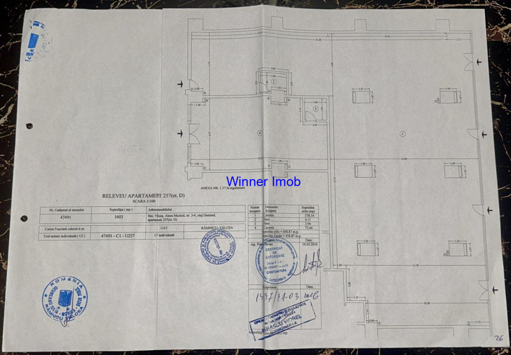 Vanzare spațiu comercial 460 mp, open space in zona Ostroveni – vis-a-vis de Kaufland, parter bloc; Winner Imob va propune spre vanzare un spațiu comercial cu o suprafata de 460 mp, situat la parterul unui bloc cu 15 etaje, în zona Ostroveni, Râmnicu Vâlcea, vis-a-vis de Kaufland. Spațiul este format din 6 unități alipite (suprafață totală 460 mp) și dispune de 2 grupuri sanitare. Vad excelent pietonal și auto. Potrivit pentru: clinică/cabinet medical, birouri, showroom, magazin, notariat etc. Status: ocupat temporar de Lem’s; disponibil la eliberare. - Tip spațiu: Spațiu comercial - Compartimentare: Decomandat / 6 unități alipite (open-space) - Suprafață utilă: 460 mp - este open space - Etaj: Parter - Grupuri sanitare: 2 - An construcție: 2011 - Stare: bună; predare la eliberare chiriaș actual - Vitrină: da - Acces: stradal, dublu acces opțional - Încălzire/Climatizare: centrala termica proprie, aer conditionat - Locuri de parcare: în zonă publică; opțional in parcare kaufland - Disponibilitate: imediat după relocarea Lem’s Chirie: 800000 euro/usor negociabil