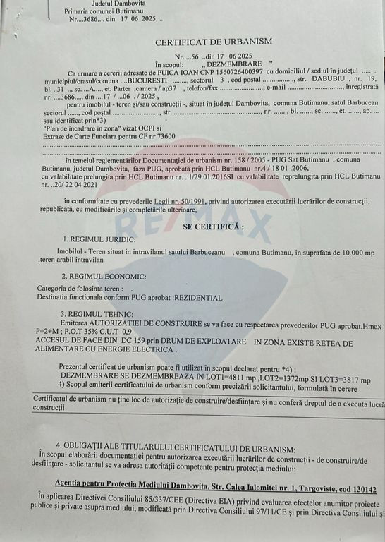 Vanzare teren intravilan Butimanu / sat Barbuceanu, judet...