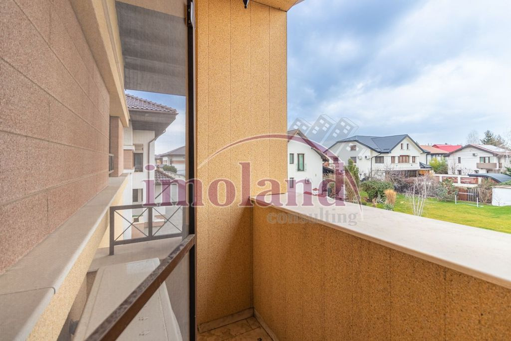 Va propunem la vanzare o vila foarte spatioasa, situata intr-un complex rezidential din zona Pipera - Iancu Nicolae. Condominiul finalizat in 2008 este localizat in imediata proximitate a British School, avand acces direct din soseaua Iancu Nicolae si se intinde pe o suprafata de 11000 mp, cu 26 de unitati locative individuale, fiecare cu gradina proprie de aprox. 200 mp. Ansamblul rezidential dispune de loc de joaca pentru copii (250 mp) si parcare pentru vizitatori. Fiecare vila are aprox . 310 mp utili si este dispusa pe P+E+Mansarda. Compartimentare vila: PARTER: Living + dining (37 mp), bucatarie inchisa, baie, camere de depozitare (3), 2 terase cu suprafata de 18 mp, gradina libera 200 mp si garaj de 19 mp pentru o masina ETAJ 1: 4 dormitoare cu suprafete intre 13,3 mp si 21,9 mp, 3 bai si 2 walk-in closets; MANSARDA: 2 dormitoare, hobby room (spatiu recreativ) si 1 baie. Un loc de parcare in garaj si unul exterior sunt incluse in pretul de vanzare. Mentenanta pentru vila este de aprox 300 Euro + TVA/lunar si include servicii pentru salubritate, electricitate, piscina, centrala termica, gradina si servicii la cererea clientului (ex: schimbare de becuri, mici reparatii interioare, etc.), paza non-stop. Zona Pipera-Iancu Nicolae este o alegere optima pentru proximitatea fata de polul de business Pipera, dar si pentru o viata linistita, in natura, aproape de Padurea Baneasa. In zona se regasesc gradinite si scoli internationale de renume: British, Cambridge, Mark Twain, American, Olga Gudynn, s.a. Pret vanzare - 810.000 EUR + TVA Clasa energetica A