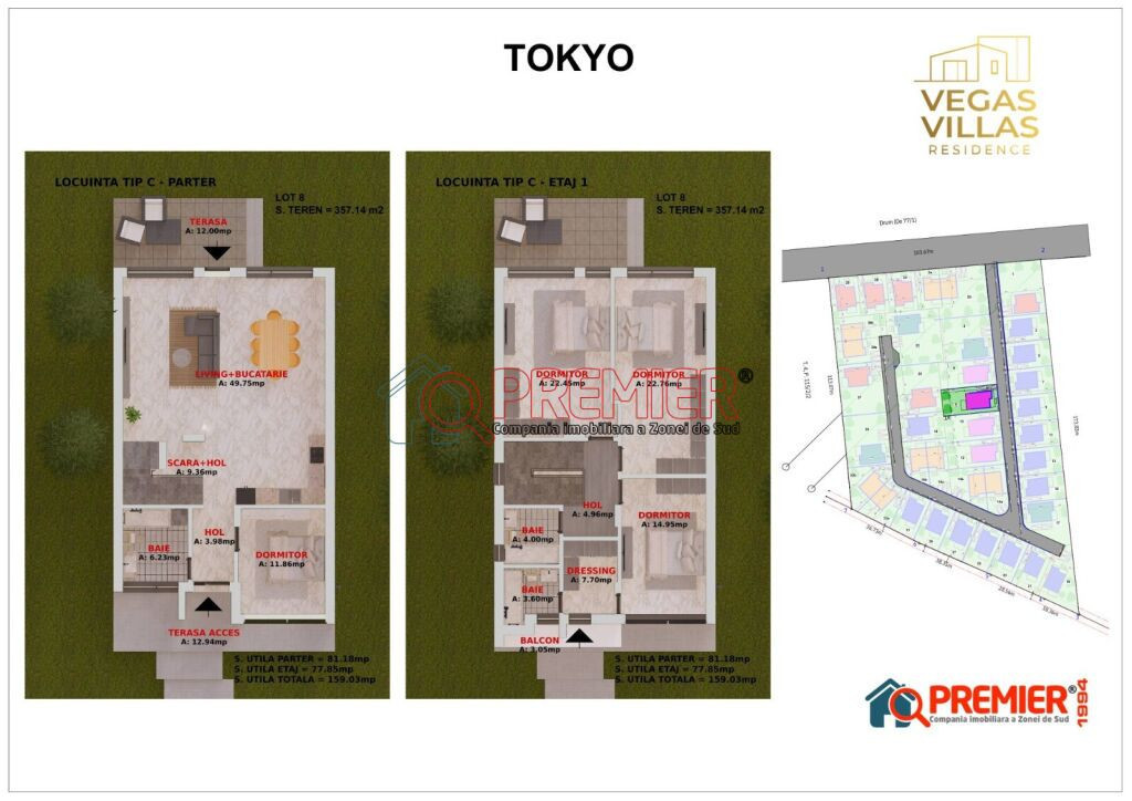 VILA TOKYO – Vegas Villas Residence Exclusivitate | Fără comision | Direct Dezvoltator | Proiect finalizat Vila Tokyo face parte din ansamblul premium Vegas Villas Residence, amplasat pe Splaiul Unirii, în apropierea zonei Pallady. Proiectul se remarcă prin arhitectura modernă și comunitatea exclusivistă de 39 de vile. Proprietatea oferă un design contemporan, spații vitrate ample și finisaje premium. Compartimentarea este eficientă, cu zone de zi luminoase și dormitoare spațioase. Curtea generoasă permite amenajări după preferințe – grădină, foișor sau zonă de relaxare. Accesul direct din living către terasă adaugă un plus de confort. Detalii tehnice: Teren 357,14 mp | Suprafață utilă 159 mp | Balcon 3,05 mp | Terasă 12 mp | Regim P+1 Localizare excelentă: acces rapid la Splaiul Unirii, A0, zona comercială Pallady și metroul Anghel Saligny. Aproape de școli, grădinițe și facilități urbane. Preț: 280.000 € + TVA Comision 0% | Disponibilă imediat pentru vizionare Contact: Vlad – Premier Imobiliare 0727 736 313 Serviciul nou oferit de PREMIER Imobiliare! Solicita acum VIZIONARE ONLINE pentru aceasta proprietate! COMISION 0% Această proprietate se poate achiziționa prin orice tip de credit bancar. Departamentul nostru financiar Premier Credit Hub vă stă la dispoziție GRATUIT (comision 0%) pentru: - identificarea celei mai bune soluții de finanțare; - întocmirea dosarului bancar complet; - obținerea rapidă a creditului necesar achiziției. Beneficiați de un serviciu ALL IN ONE, cu acces direct la ofertele tuturor băncilor comerciale din România. Se acceptă inclusiv venituri din străinătate, astfel încât fiecare client să poată cumpăra în cele mai avantajoase condiții. Solicitați acum o simulare de credit direct din anunț sau cereți detalii consultantului Premier Imobiliare!