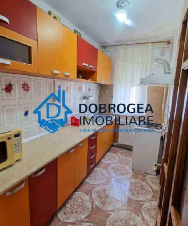 Dobrogea Imobiliare va prezinta spre vanzare un apartament de 2 camere semidecomandat ,zona Vest, etaj 4 , fara probleme la acoperis. Apartamentul este renovat și utilat complet, mobilier nou, Incalzire centrala proprie pe gaz, climatizare aparat aer conditionat. Suprafata 44 mp, centrala pe gaz Ariston (3 ani), mobilat si utilat, rulouri exterioare la toate ferestrele, termoizolat la exterior si interior Apartamentul se vinde cu tot ce se vede in fotografii. Va așteptam la vizionare! Ne puteți vizita la sediul nostru situat pe str. Pacii, nr. 6 (la parterul hotelului Select) pentru consultanta gratuita Pentru mai multe oferte vizitați site-ul Dobrogea-Imobiliare.ro sau pagina https://www.facebook.com/agentia.dobrogea.9 Id intern: P1722