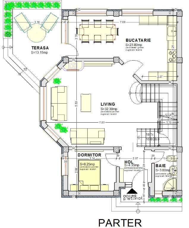 Exclusivitate ! Va prezentam o casa tip duplex , construita cu simt de raspundere , beton si caramida ,cu suprafata totala de teren de 250 mp , deschidere 15 ml , si este compartimentata astfel : Beci , parter compus din living de 32 mp , dormitor , baie , hol ,bucatarie cu acces in terasa , suprafata utila parter 73 mp , totala cu terasa 86 mp . Etaj : 3 dormitoare , 2 bai , hol ,2 balcoane , suprafata utila etaj 67 mp , suprafata totala 79 mp , suprafata utila parter plus etaj 140 mp , totala 165 mp. Casa se vinde la alb , acoperisul pus , termopane , instalatia trasa in casa , restul detaliilor se discuta la fata locului .