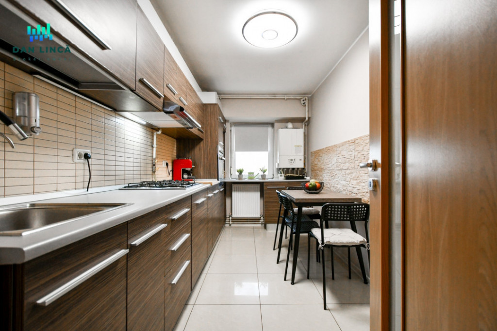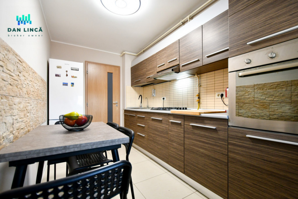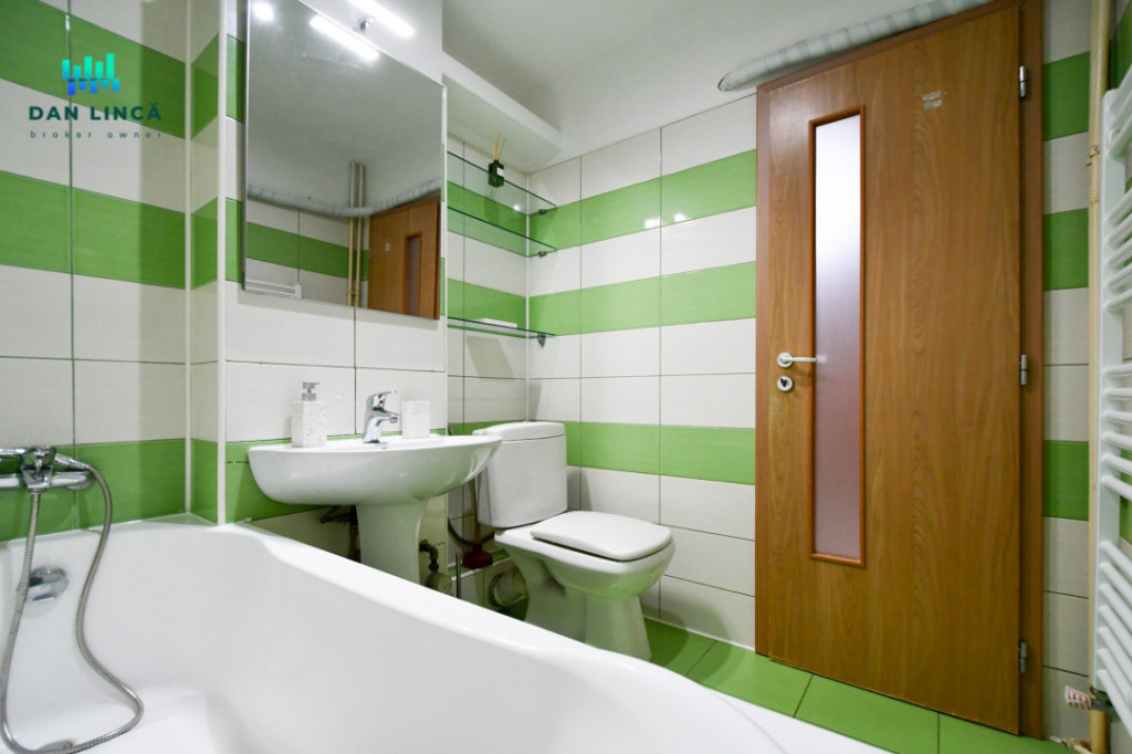 Va oferim spre inchiriere un apartament cu 2 camere in suprafata utila de 48,73mp + 3,86mp balcon (total suprafata utilizabila 52,59mp) situat la etajul 3/4 niveluri intr-un bloc pozitionat pe B-dul Tomis (cu acces stradal si vedere pe spate). Apartamentul este incadrat cu pozitionare cardinala Sud-Vest, se inchiriaza mobilat conform fotografii si dispune de urmatoarele dotari si finisaje: Gresie, faianta, parchet laminat, centrala termica pe gaz 24KW in condensare cu calorifere otel si portprosop in baie, tamplarie PVC cu geam termopan, obloane retractabile, plase insecte, termoizolatie exterioara polistiren (in balcon si termoizolatie interioara), usi interior celulare, usa metalica la intrare, plita inox pe gaz si hota, cuptor electric si cuptor cu microunde, combina frigorifica, instalatie filtrare apa cu 4 cartuse filtrare, espresor cafea, masina de spalat rufe, televisor LCD Samsung, sistem audio, aparat de aer conditionat 12000 BTU, corpuri iluminat full led, decoratiuni si tablouri, vesela, tacamuri si ustensile bucatarie de baza. La data semnarii contractului de inchiriere, se solicita plata in avans pe doua luni, din care contravaloarea chiriei pe o luna reprezinta suma de garantie (suma ce se elibereaza la finalul perioadei contractuale, dupa plata integrala a utilitatilor si predarea imobilului in conditii bune pentru utilizare). Aceasta proprietate se adreseaza unei familii formate din 2-3 persoane. Nu sunt acceptati chiriasi fumatori, cu animale de companie sau cetateni straini. Pret inchiriere 450€/luna + contravaloarea utilitatilor Id intern: P141