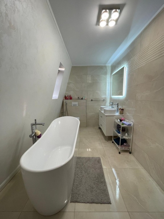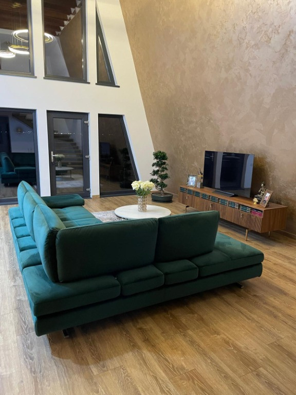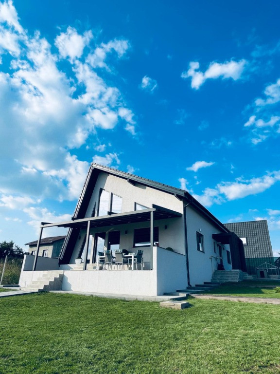 Agentia imobiliara VIGAFON vinde casa cu 3 camere situata in Paulesti,judetul Prahova.Construita in anul 2023 cu regimul de inaltime P+M,fundatie de beton,structura lemn triplustratificat cu spuma poliuretanica de 20 cm intre grinzi,izolata la exterior cu polistiren de 10 cm,acoperita cu tigla metalica cu acoperire de roca vulcanica Novatik.Compartimentarea casei este facuta astfel: parter-living open-space cu bucataria,dormitor,baie,dressing,camera tehnica,hol,terasa acoperita;mansarda-dormitor,baie,dressing,hol,cu o suprafata construita de 248 mp,amplasata pe un teren cu suprafata de 700 mp cu deschidere de 35 ml.Casa are toate utilitatile trase(apa,gaze,curent electric,canalizare),dispune de finisaje si amenajari moderne(gresie,faianta,parchet laminat,tamplarie PVC cu geam termopan cu 4 foi,incalzire in pardoseala la parter,centrala termica,2 aparate de aer conditionat,calorifere de otel,scara din lemn de stejar,usi interior din lemn de tei,sistem de alarma,curte pavata,gard de beton,velux),cadastru si intabulare.Se vinde mobilata si utilata.
