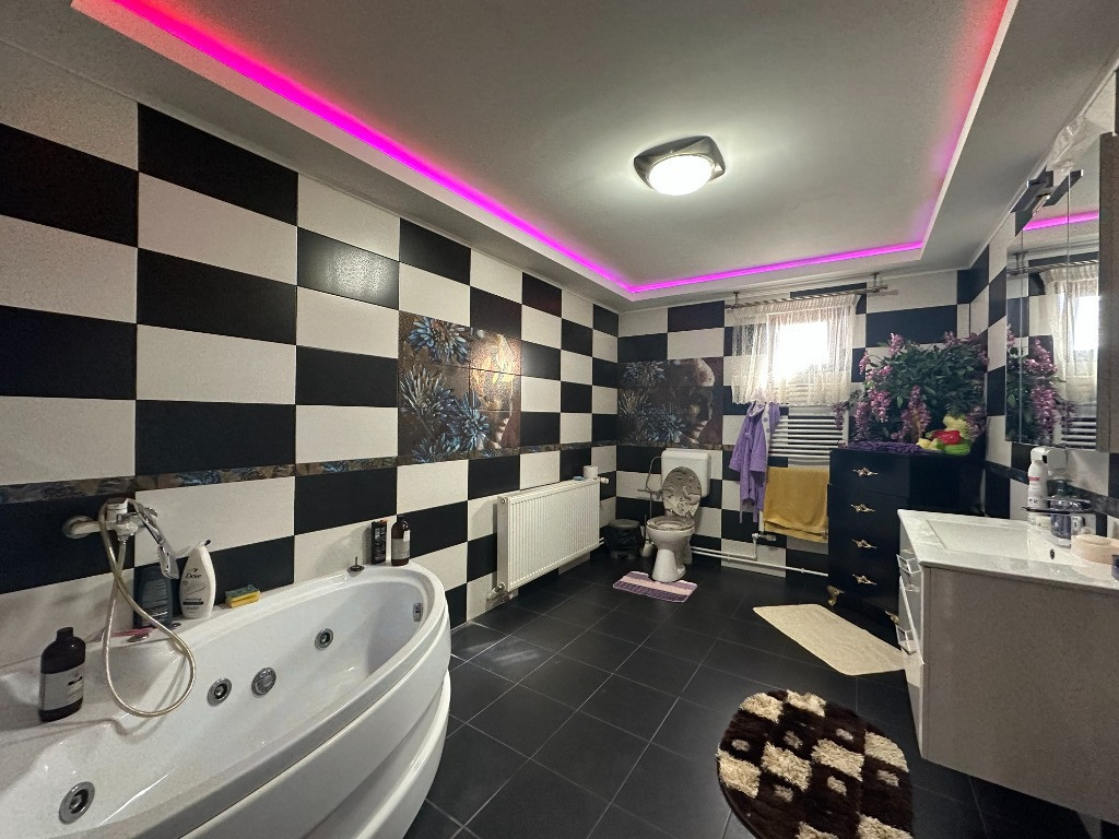 Agentia imobiliara VIGAFON ofera spre vanzare casa cu 4 camere situata in sat Strejnicu,judetul Prahova,cu regimul de inaltime P+1E,structura fundatie si cadre de beton armat,compartimentare BCA,tencuita interior/exterior,izolata la exterior cu polistiren de 10 cm.Casa este compartimentata astfel:parter-living,dormitor,bucatarie,baie,terasa inchisa;etaj-2 dormitoare,baie,hol,terasa;cu o suprafata construita de 196 mp,amplasata pe un teren cu suprafata de 354 mp cu deschidere de 12 ml.Are toate utilitatile trase(apa,gaze,curent electric,fosa),dispune de finisaje si amenajari moderne(gresie,faianta,parchet laminat 12 mm,tamplarie PVC Salamander cu geam termopan tripan,usi interior MDF,acoperis cu roca vulcanica,podul izolat cu vata bazaltica,calorifere de otel,centrala termica,aer conditionat,imprejmuire cu gard din BCA,porti din fier forjat actionate electric,mana curenta fier forjat),cadastru si intabulare.Se vinde semimobilata.