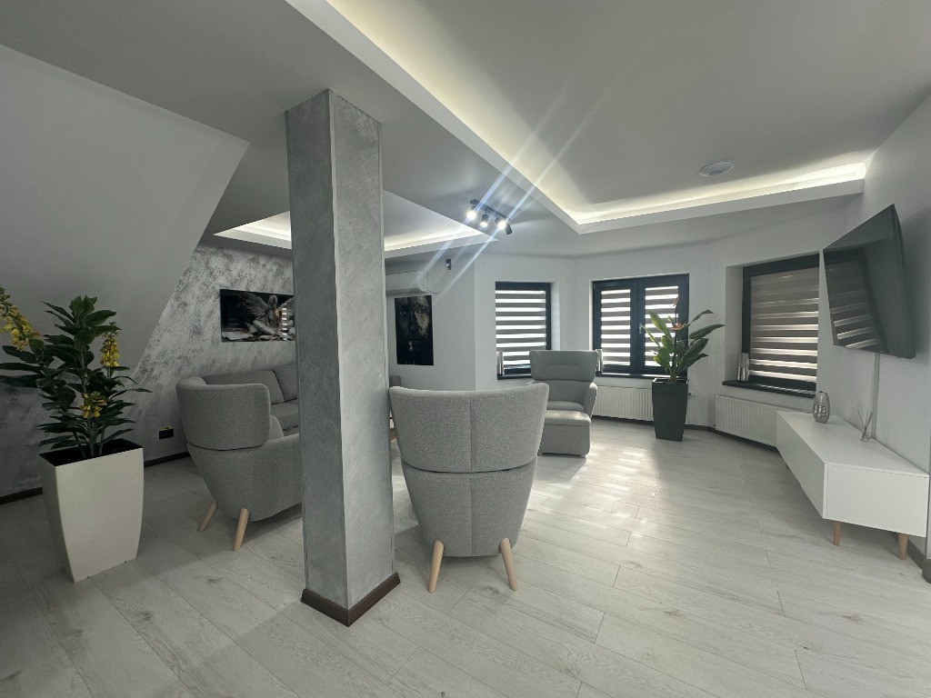Agentia imobiliara VIGAFON ofera spre inchiriere casa cu 5 camere situata in zona Caraiman-Nicolae Titulescu,construita in anul 2005,cu regimul de inaltime P+M,structura fundatie si cadre de beton armat,compartimentare caramida si beton.Compartimentarea casei este facuta astfel:parter-living,dinning,birou,bucatarie,baie,hol,terasa; mansarda-3 dormitoare,baie,hol,2 balcoane;cu o suprafata construita de 181 mp,amplasata pe un teren cu suprafata de 285 mp cu deschidere la 2 strazi 18/14.55 ml.Imobilul are toate utilitatile trase(apa,gaze,curent electric,canalizare),dispune de finisaje si amenajari moderne(gresie,faianta,parchet laminat,tamplarie PVC cu geam termopan,usi interior MDF,centrala termica,calorifere de otel,5 aparate de aer conditionat,sistem de supraveghere video,porti actionate electric),mobilata si utilata.