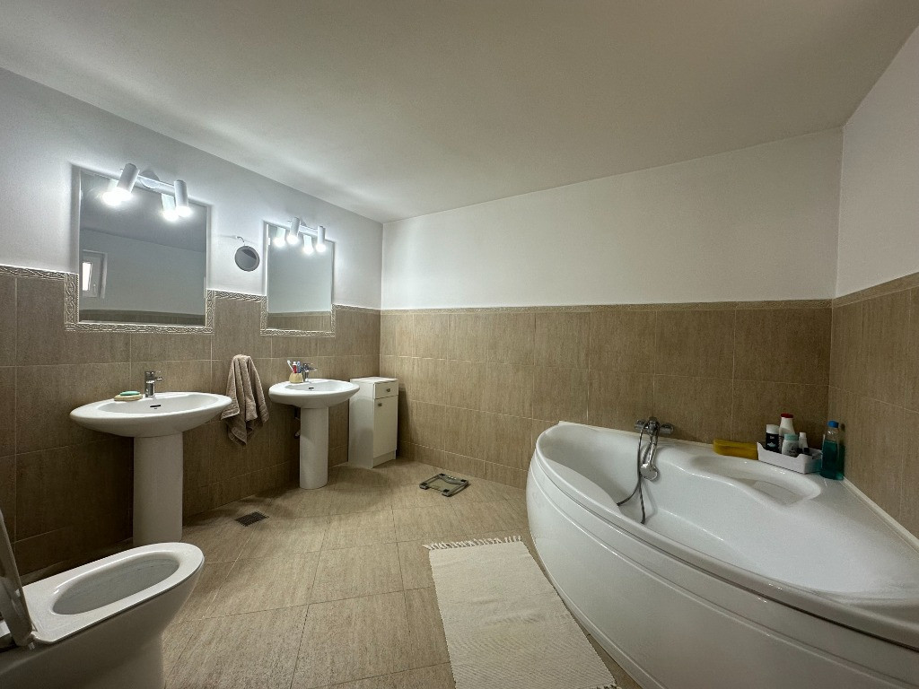Agentia imobiliara VIGAFON ofera spre vanzare casa cu 5 camere situata in zona de Sud,structura P+M,construita din caramida si beton in anul 1950,renovata in anul 2001,centura si planseu de beton armat turnat peste parter.Casa este compartimentata astfel:parter -living open-space cu bucataria,2 dormitoare,baie,hol;mansarda-2 dormitoare,hol,baie,terasa.Imobilul este amplasat pe o suprafata de teren de 172 mp cu deschidere de 13 ml,are o suprafata construita de 164 mp,suprafata utila 140 mp,acoperita cu tabla Lindab.Dispune de finisaje si amenajari moderne(gresie,faianta,parchet laminat,termopan,usi interior lemn masiv,calorifere de otel,centrala termica,2 aparate de aer conditionat,velux),cadastru si intabulare.Se vinde semimobilat.