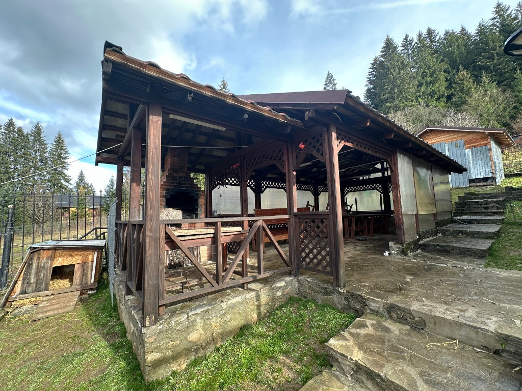 Agentia imobiliara VIGAFON ofera spre vanzare pensiune/casa de vacanta cu 9 camere situata in Predeal,zona Malul Ursului.Imobilul este construit in anul 2007 avand regimul de inaltime P+1E+M,structura fundatie si cadre de beton armat cu compartimentare de caramida la parter,planseu de beton turnat peste parter,structura de lemn etaj si mansarda,vata bazaltica si rigips la interior,izolatie si lambriu la exterior,acoperit cu tabla Lindab.Compartimentarea este facuta astfel:parter-living,bucatarie,baie,hol,spalatorie,wc serviciu,terasa;etaj-3 camere,3 bai,2 balcoane;mansarda-4 camere,4 bai,2 balcoane,cu o suprafata construita de 330 mp,suprafata utila 300 mp,amplasata pe un teren cu suprafata de 576 mp.Casa are toate utilitatile trase(apa,gaze,curent electric 380 kw,canalizare),dispune de finisaje si amenajari(gresie,faianta,parchet laminat,tamplarie PVC Salamander cu geam termopan tripan,centrala termica,incalzire in pardoseala la parter,calorifere de otel,rulouri geamuri,usi interior PVC,supraveghere video),cadastru si intabulare.