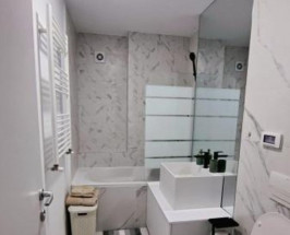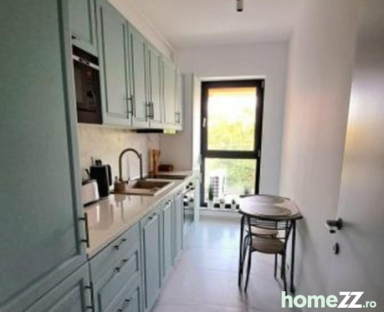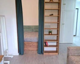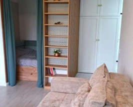 Studioul este situat la etajul 1 și dispune de centrala termica proprie, încălzire în pardoseală și aer condiționat. Este dotat cu aparatura electrocasnica noua completă, inclusiv mașina de spălat, uscător de rufe, mașina de spălat vase cuptor cu microunde, cuptor electric, plita cu inducție, televizor LG OLED cu diagonală de 135 cm, bucătăria dotată cu tot necesarul de gătit și servit masa. De asemenea aveți la dispoziție lenjerie de pat și prosoape de baie, toate noi. Studioul deține un spatiu de dormit separat cu un pat de 200x160 cm precum și o canapea extensibilă mare. Mobilierul este nou și modern. Studioul este la prima închiriere. Nu acceptam animale de companie. Fumatul este posibil doar pe balcon. Acceptam doar închiriere pe termen lung. Complexul va avea în viitor zone separate de relaxare, gym și piscina. Prețul de închiriere este de 600 de Euro pe luna, împreună cu un loc de parcare subteran.