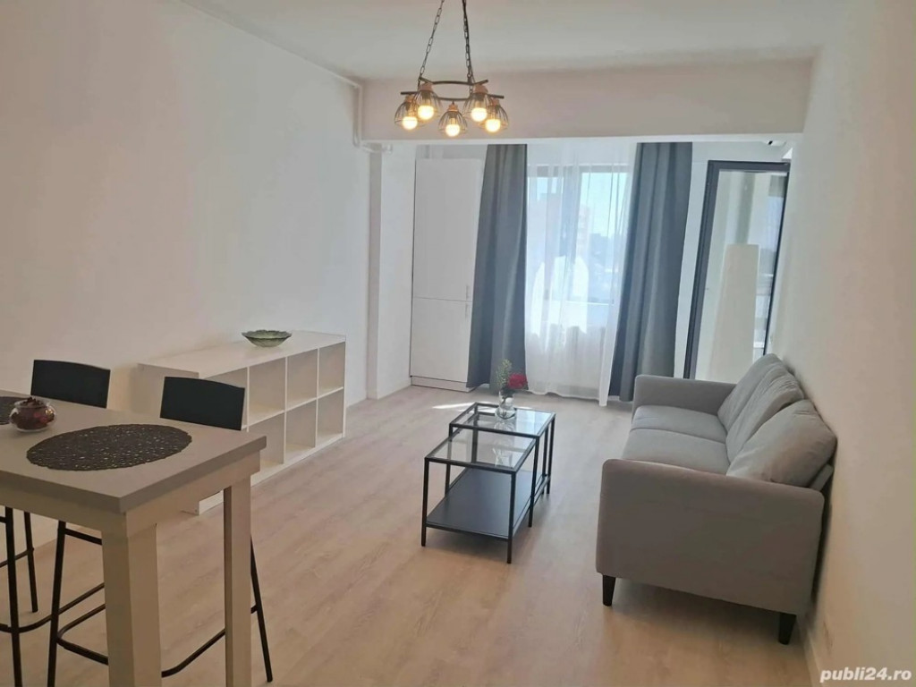 Apartament nou,totul este NOU ! 550 spre inchiriere acest apartament de 2 camere, ISG Residence IV. Situat la et 7 din 12, pe zona de rasarit. acesta beneficiaza de o vedere panoramica si de lumina naturala. Este foarte bine compartimentat, avand living cu bucatarie deschisa cat si dormitor linistit. Ambele camera au iesire pe balcon. Apartamentul este complet mobilat si utilat, fiind disponibil imediat, la cheie. Livingul dispune de canapea, mobilier TV, lampadar, 2 masute de cafea, TV ese disponibil la cerere. Bucataria este complet utilata, toate electrocasnicele sunt noi, dispune de masina de spalat, combina frigorifica, cuptor electric, plita electrica, hota, mobiler bine imaprtit, inclusiv masa tip bar cu doua scaune. Dormitorul este compus din dressing cu oglinda, foarte bine compartimentat si spatios, pat mae matrimonial piele ecologica, 2 noptiere. Holul este mobilat, exista cuier si 2 pantofare spatioase, atat pentru incaltamintea de zi cu zi, cat si pentru depozitare. Baia este utilata, dispune inclusiv de dulap depozitare, cada si paravan cada, accesorii. Balconul ofera o priveliste foarte frumoasa, masuta si scaunele sunt un bun prilej de relaxare. Apartamentul vine la pachet cu loc de parcare bine situate si vizibil. Nu se accepta animale de companie. Se poate fuma pe balcon.