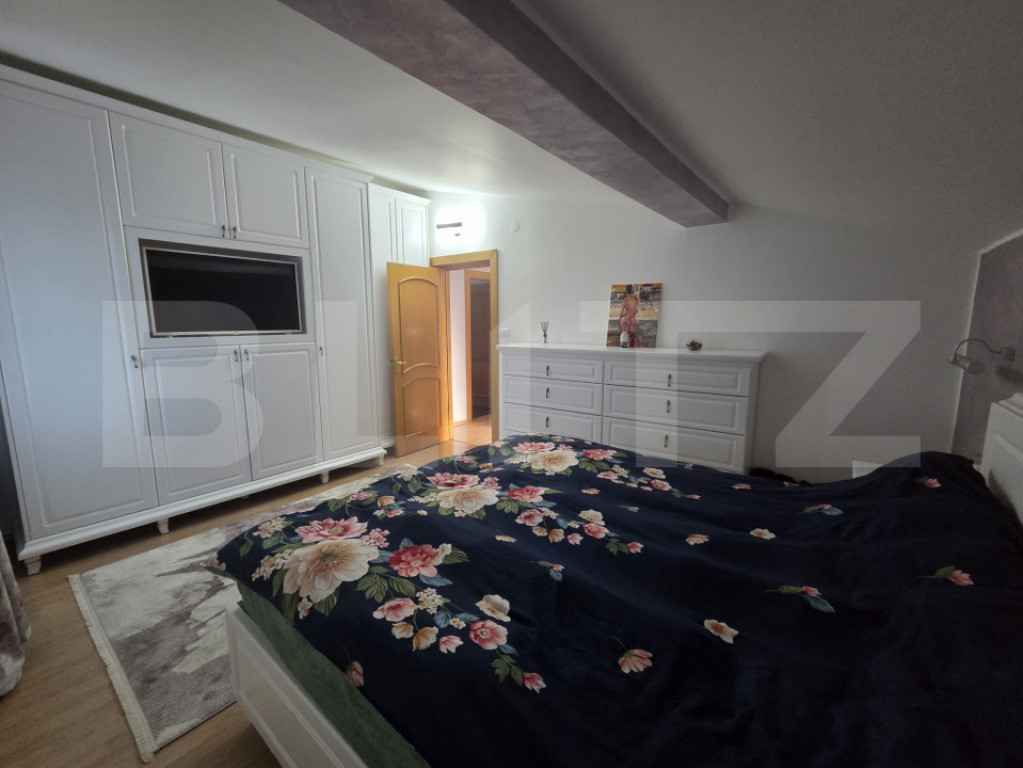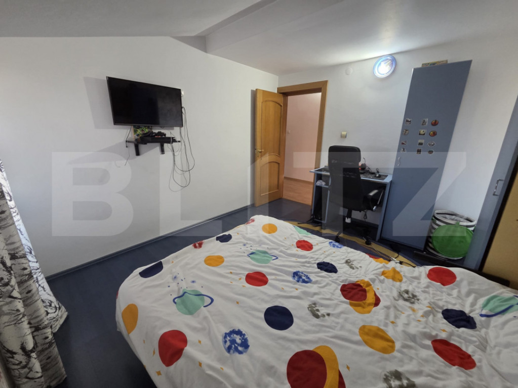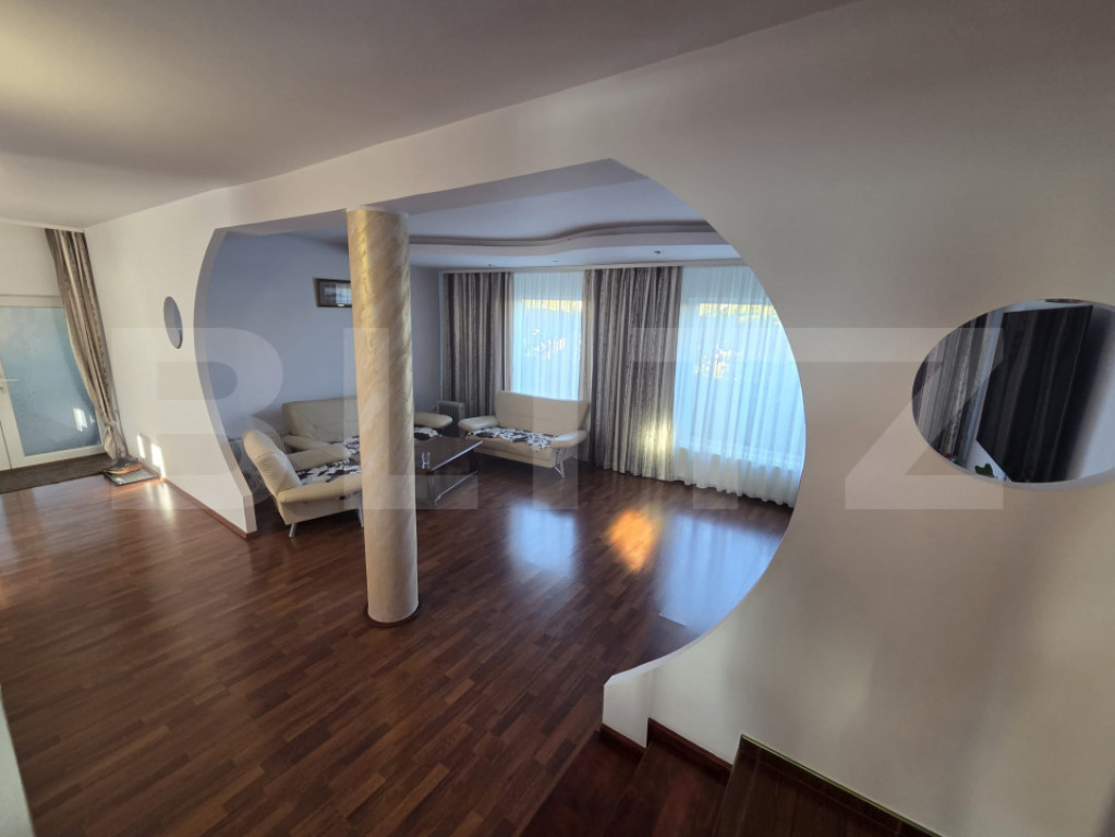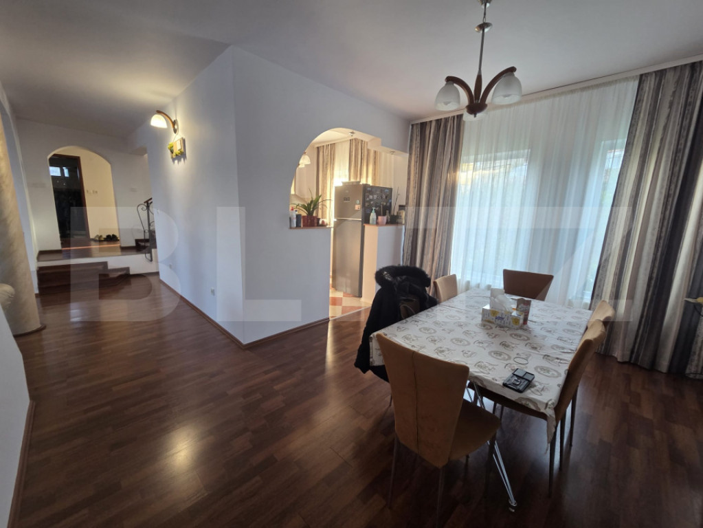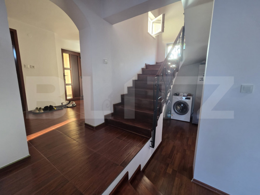 Blitz vă propune spre vânzare o vilă modernă construită integral din cărămidă, situată într-o zonă liniștită și accesibilă din Târgoviște, cu o arhitectură elegantă și finisaje de înaltă calitate. Proprietatea impresionează prin funcționalitate, confort și atenția acordată fiecărui detaliu. Suprafața totală a terenului este de 389 mp, din care curtea utilă măsoară 277 mp, amenajată cu pietre decorative, gazon și foișor cu bucătărie de vară complet echipată. Vilă dispune de o suprafață utilă totală de 226 mp (parter + etaj), compartimentată armonios: Parter (113 mp utili): -living spațios open-space cu zonă de dining; -bucătărie complet mobilată și utilată; -dormitor generos; -baie de serviciu; -acces către curte și foișor. Etaj (113 mp utili): -4 dormitoare luminoase; -2 băi moderne; -2 holuri spațioase. Anexe și dotări: -garaj subteran de 28 mp cu ușă automată; -toaletă de curte; -porți și ușă de garaj acționate electric, pe telecomandă; -sistem de supraveghere video; -centrală proprie, 3 aparate de aer condiționat; -ferestre termopan Salamander Evolution cu sticlă de 52 mm, uși din termopan; -izolație exterioară de 10 cm și pod izolat cu vată minerală; -acoperiș din tablă, tencuială interioară și exterioară decorativă; -pardoseli cu parchet, gresie și faianță; -scară interioară din lemn masiv. Utilități: gaze, apă curentă, canalizare, internet, electricitate. Vila se vinde complet mobilată și utilată, inclusiv cu electrocasnice: aragaz, frigider, combină frigorifică, congelator, mașină de spălat, uscător de rufe etc. Această proprietate reprezintă o oportunitate unică pentru cei care caută un cămin elegant, complet echipat, într-o zonă sigură, modernă și cu acces facil. Cod ofertă / ID BLITZ: P155955 Id intern: P155955