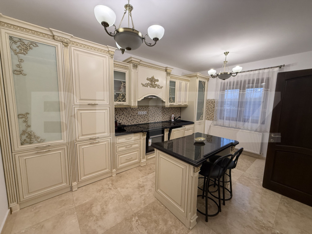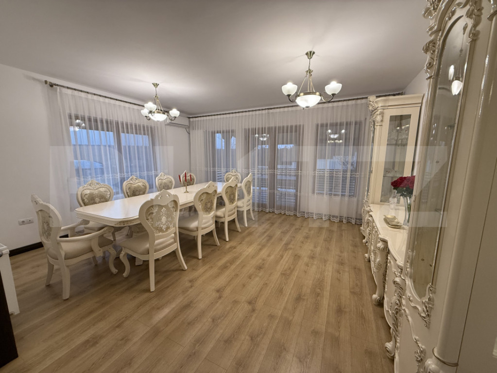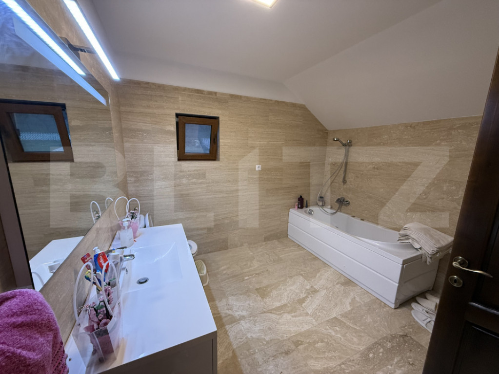Blitz oferă spre vânzare o vilă impresionantă, situată într-o zonă deosebit de liniștită din Cobia (aproape de Găești), la doar 20 km de Autostrada A1. Proprietatea este ideală atât pentru locuință de familie, cât și pentru investiție turistică, datorită suprafețelor generoase, compartimentării excelente și terenului foarte mare de 3173 mp. Casa este construită solid, cu atenție la detalii și finisaje premium: -mobilier din lemn masiv realizat pe comandă, -trepte și balustrade din fag, -uși din tei, -băi și holuri placate cu piatră naturală (travertin), -terase placate cu granit, -bucătărie complet utilată, cu fronturi decorative și blat de piatră, -2 aparate de aer condiționat, -sistem antiefracție cu senzori și videointerfon. Proprietatea este formată din parter + etaj + mansardă, având o suprafață utilă de 327 mp și 370 mp construiți. Mansarda de 77 mp reprezintă un spațiu excelent pentru relaxare, activități, hobby sau camere suplimentare. Terenul de 3173 mp este complet împrejmuit și include: -două porți de acces (una automată), -alei betonate pe 40 m, -gazon 400 mp cu sistem de irigare automat, -livadă matură cu aproximativ 60 de pomi fructiferi, -clădire secundară de 36 mp (garaj, baie și depozitare), -panouri fotovoltaice de 9 kW care reduc semnificativ costurile de întreținere. Proprietatea se vinde complet mobilată și utilată, exact ca în fotografii – totul este pregătit pentru mutare imediată Este o ofertă exclusivă, rar întâlnită în zonă, perfectă pentru cei care caută liniște, spațiu, calitate și un potențial real de investiție. Cod ofertă / ID BLITZ: P159463 Id intern: P159463