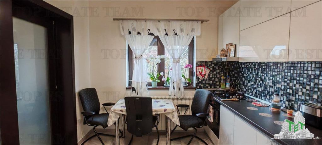 Excelenta prin experienta! Noi nu vindem francize, noi vindem proprietati... si o facem pe 5 continente ! Va propunem spre vanzare o proprietate deosebita, o casa pe parter si mansarda inalta, 5 camere, cu materiale premium si finisaje de lux, in localitatea Ciorogarla, la 15 minute de metrou Pacii. Constructie solida din cadre de beton si caramida porotherm - casa a fost realizata in regie proprie de un dezvoltator cu experienta pentru familia sa. Sistem de drenaj la teren, 29 stalpi si 8 bare fier 16mm. (exista poze din toate stadiile de constructii si facturi aferente). Placa 20cm peste parter. Pod izolat cu spuma. Curtea este amenajata cu gazon cu sistem de irigatie, gard cu fundatie beton, arbusti si pietricele decorative, alei pavate, garaj, sala fitnes, magazie unelte cu beci pentru put, lumini exterior cu senzori. Proprietate cu dubla deschidere la strada publica si drum servitute. Usa acces casa marca MACO - 2000 EURO - securitate sporita, izolatie fonica si termica. Sistem de alarma si supraveghere video conectat la telefon. Videointerfon. Toate finisaje de interior sunt din gama premium (usi lemn de 400-500 EURO/bucata, tamplarie PVC tripan, portprosop inox, etc) Living cu suprafete vitrate mari pentru un apus de poveste. Inaltimea camerelor este de 2.95 metri (peste standardul caselor pe parter). Semineu electric pentru atmosfera romantica. Compartimentare eficienta: hol mare, 2 dormitoare identice cu baie , 1 dormitor matrimonial cu dressing si baie. Terasa acoperita 18metri cu iesire din bucatarie. Garaj incalzit cu usa acces Hormann (varf de gama in domeniu) actionata prin telecomanda. Usa catre casa cu senzori de blocare pentru animale/insecte. Suprafata utila este 250mp, suprafata totala 280mp cu sala fitnes terase si garaj. Curte proprie de 700 mp Oferim consultanta gratuita si facilitarea obtinerii rapide a creditului ipotecar, cu dobanda foarte buna si rate fixe pentru 5 ani, fara costuri ascunse ! Asiguram consultanta juridica si consultanta financiara permanenta ! Program de vizionare flexibil, inclusiv seara sau weekend (cu programare in prealabil) Vila se vinde complet mobilata/utilata pentru suma de 249500 EURO, nu se adauga TVA. Tranzactioneaza cu noi si primul transport de mobila este gratuit in Bucuresti si Ilfov! Oferta exclusiva apartine agentiei Top Estate Team (www.tet.ro) Pretabil locuinta, locuinta/birou. ID intern: TET0019871 Beneficiaza de serviciile TET: Oferte internationale in peste 15 tari (Cipru, Grecia, Muntenegru, Regatul Unit, Dubai...) Servicii de asigurari Evaluari Autorizate ANEVAR Servicii Property Management De peste 15 ani alaturi de tine! .
