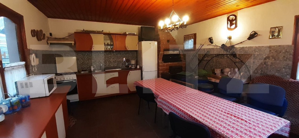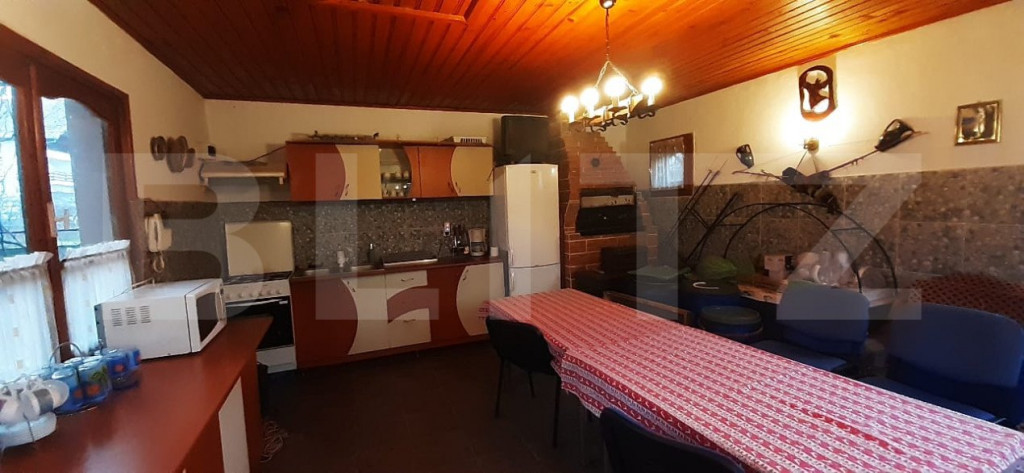 Blitz va propune spre achizitie o vila de 6 camere (Comuna Moțăieni), la 900 m de Pucioasa. Oportunitate unică de achiziție a unei case spațioase și bine întreținute, situată într-o zonă pitorească, cu priveliști spectaculoase către dealuri, barajul Pucioasa și munți! Caracteristici generale: Regim de înălțime: Parter + Etaj + Pod funcțional An construcție: 2005, recent refațetată în 2024. Amprentă la sol: 120 mp. Suprafață totală teren: 912 mp (500 mp construiți, 412 mp grădină amenajată). Structură: Construcție solidă din bolțari, acoperită cu tablă. Orientare: Nord-Sud, cu fața către Sud, beneficiind de soare pe tot parcursul zilei Dotări și facilități: Încălzire: 2 centrale termice (una de bază și una de rezervă, ambele funcționale). Sistem de apă: Apă curentă filtrată prin două filtre, boiler din inox de 150 l cu pompă de recirculare și controller. Fosa septică ( proiect în desfășurare pentru racordare la canalizare). Panouri solare: 24 tuburi vidate pentru apă caldă menajeră. Gaze, internet, TV cablu în fiecare cameră. Compartimentare: Parter: 3 dormitoare spațioase, 1 bucătărie interioară complet utilată, 1 baie + WC de serviciu, 2 holuri generoase. Cămară utilata cu rafturi de metal. Verandă închisă cu termopan, Acces către beci (compus din 2 compartimente utilate cu rafturi metalice) Etaj: 3 dormitoare mari 1 salon festiv 1 baie Bucătărie deschisa catre salon, Terasă interioară închisă cu termopan. Balcon exterior. Pod: Înalt, cu capacitate mare de depozitare. Anexe și alte facilități: Bucătărie de vară cu grătar încastrat, terasa și apă curentă. Beci cu intrare din veranda și afumătoare exterioară. Seră de flori și legume funcțională. Atelier privat echipat cu strung SN 420 și scule (opțional, demontabil). Garaj interior din lemn bine întreținut. Grădină amenajată cu gazon,leagan, cișmea exterioară și mini-cascadă funcțională. Curte pavată, împrejmuită cu gard din beton la stradă și panouri de sârmă în rest. Poartă electrică cu interfon si camera video video. Bolta de vie cu producție anuală de struguri. Vedere și amplasare: Priveliște superbă către toate punctele cardinale. Zonă liniștită, ideală pentru relaxare și confort. Deschidere la stradă de 21,78 m, cu adâncime de 41,9 m În localitate există grădiniță, școală, dispensar, 2 biserici și acces la mijloace de transport. Casa este parțial mobilată și oferă un spațiu generos, bine întreținut, perfect pentru cei care își doresc confort, natură și liniște. Pentru mai multe detalii și vizionări, nu ezitați să ne contactați! Cod ofertă / ID BLITZ: P142943 Id intern: P142943