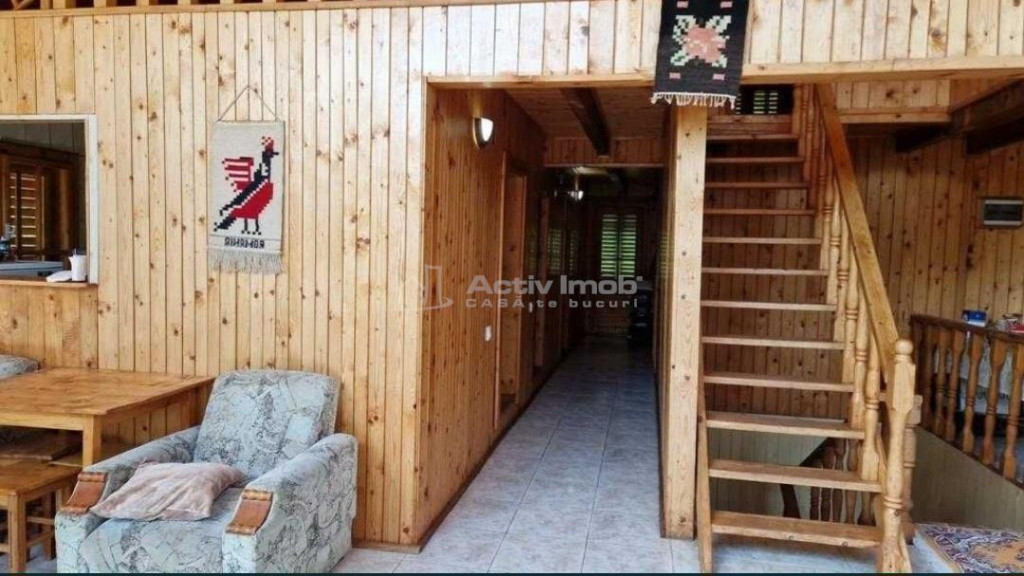 -Vila se afla in localitatea Predelut , comuna Bran, Jud.Brasov la 29 km de Brasov - Vila structurata pe P E M ,anul de constructie 1997 cu suprafata utila de 395 mp, suprafata construita de 500 mp, teren aferent propietatii 1618 mp. - Alcatuita la parter din: 1 dormitor, baie, camera tehnica, hol, terasa, 2 garaje. -Etaj: Living imens cu spatii vitrate , semineu si vedere panoramica, 2 balcoane ,acces terasa, hol, 2 dormitoare, baie, 1 bucatarie, camara. -Mansarda: 2 dormitoare,balcon, camera tehnica. -Utilitati: Apa, curent electric, fosa septica, DigiTV -Incalzirea se face cu centrala pe lemne. ID ACTIV IMOB: 230710 CASA te bucuri!!! Oferim consultanta gratuita pentru credite ipotecare si refinantare.