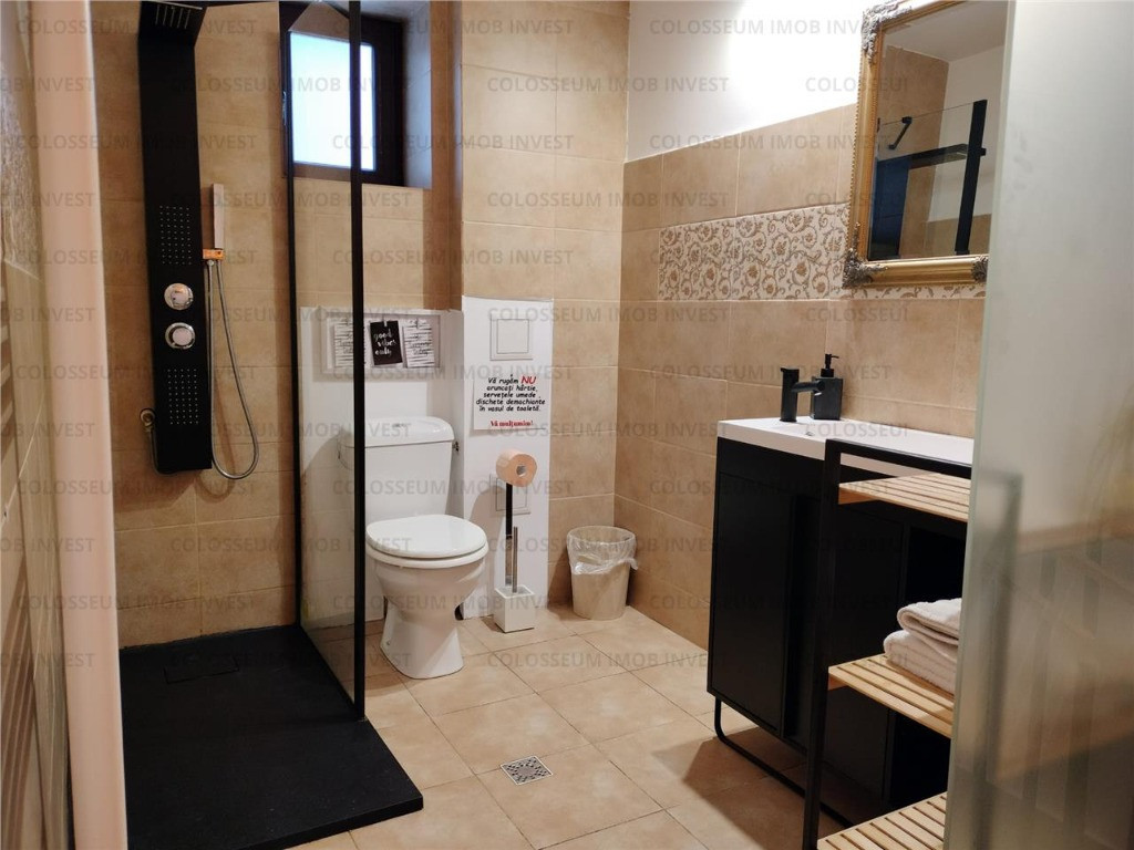 ID intern: 24807 Proprietate disponibila prin Agentia Colosseum Invest. Iti propunem casa de vanzare, P+1+M, in zona Darste - Brasov, reper Bunloc, avand 7 camere si 4 bai suprafata totala construita 420mp, suprafata utila 230 mp si suprafata teren 800 mp. Proprietatea este structurata astfel : - la parter: hol,baie,bucatarie open space,living,2 dormitoare - la etaj : 2 dormitoare (fiecare cu baie proprie), 2 dormitoare cu baie comuna Proprietatea se vinde mobilata si utilata complet,in prezent fiind inchiriata in regim hotelier.