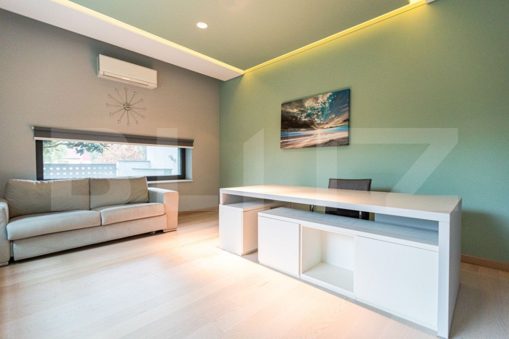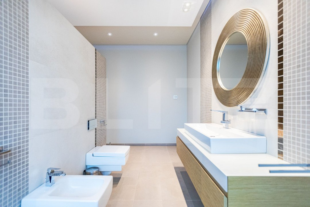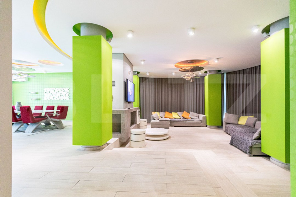 Blitz ofera spre vanzare casa individuala situata in zona Lunei. Datorita amplasarii proprietatii aveti acces la multiple facilitati: scoli, supermarket, restaurante, mijloace de transport in comun etc. Constructia are un regim de inaltime P+1+Mansarda, dispune de o suprafata de 790 mp utili, 2300 mp teren. Compartimentarea este practic gandita si se prezinta astfel: - Parter: hol, baie, living, dinning, bucataria, birou, camera alimente, spatiu tehnic, 2 garaje si zona spa: jacuzzii, piscina, dus, sauna uscata, sauna umeda, grup sanitar si zona barbeque. - Etaj: camera matrimoniala cu dressing, baie, 2 dormitoare cu bai propri, birou si terasa. -Mansarda: dormitor, baie, spatiu depozitare, camera de joaca. Finisaje interioare: ceramica Bisazza, Marazzi, parchet Itlas, ferestre tamplarie aluminiu Schucho cu sticla arhitecturala fnica si termica Saint Gobain, usa de intrare si porti garaj marca Hormann, usi interioare Lualdi Doors/Dorma, vopsea lavabila STO, obiecte sanitare Villeroy&Boch, Grohe, Viega, Kessler, incalzire in pardoseala REHAU, cazane in condesatie si panouri solare HOVAL, instalatii cu climatizare Mitsubishi, corpuri de iluminat Artemide, Foscarini, Philips. Mobilierul din interior este marca ROVERE. Aparatura electrocasnica fiind FRANKE si SAMSUNG. Gradina este amenajata si dispune de vegetatie matura si sistem de irigatii automatizat. Intre dotarile casei regasim si sistem de alarma, videointerfon, sistem sunet BOSE, semineu. Va asteptam cu drag la o vizionare! Cod ofertă / ID BLITZ: P103017 Id intern: P103017