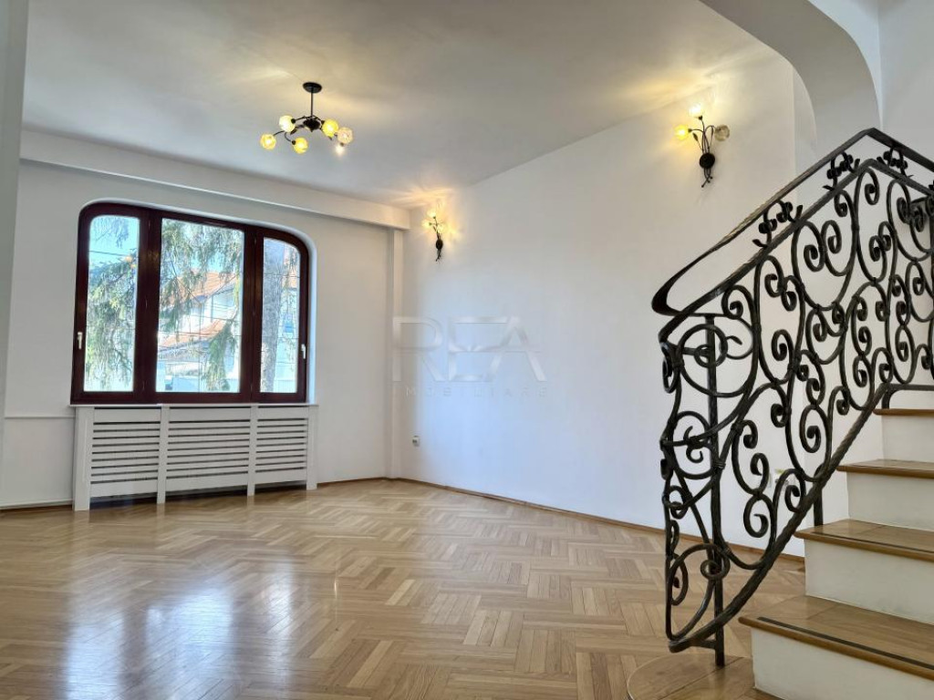 Proprietate reprezentativă, recent renovată și disponibilă imediat, ideală atât pentru reședință exclusivistă, cât și pentru activități profesionale (birouri, clinică, cabinet notarial/avocatură, consultanță). Imobilul este dispus pe D+P+1+M, cu o suprafață utilă totală generoasă și compartimentare eficientă: Demisol – cameră tehnică, garaj, spații auxiliare Parter – 2 camere, bucătărie, grup sanitar Etaj 1 – 3 camere, 2 băi Mansardă (71,29 mp) + terasă 14 mp – 2 camere, 1 baie Dotări: centrală proprie, aer condiționat, gaz, curent, sistem de alarmă, interfon. Poziționare excelentă, vizibilitate foarte bună și acces rapid către zona de business Floreasca – Dorobanți – Barbu Văcărescu. Pentru detalii și vizionări, vă rugăm să ne contactați specificand codul Proprietate - P10306. Id intern: P10306
