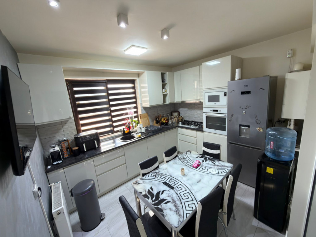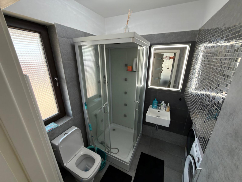 Eleganta, confort si stil – Vila duplex premium, complet mobilata, in Chiajna-Apeductului. Daca iti doresti o casa moderna, eleganta si gata de mutat, unde fiecare spatiu este gandit pentru confortul familiei tale, aceasta vila tip duplex din Chiajna poate fi alegerea perfecta. O proprietate cocheta, amenajata cu bun gust si atentie la detalii, ideala pentru cei care vor sa se bucure de liniste, spatiu si un stil de viata modern. Va prezentam spre vanzare o vila superba tip duplex, cu o suprafata construita de 110 mp, dispusa pe P+1+Pod, foarte bine compartimentata si extrem de practica pentru viata de zi cu zi. Vila a fost construita in anul 2020 de un constructor renumit, folosindu-se materiale de calitate si o structura solida: fundatie, stalpi, grinzi si planseu din beton armat, zidarie din caramida Porotherm si izolatie exterioara cu polistiren dens de 10 cm. Proprietatea dispune de geamuri termopan Salamander cu 7 camere, usa metalica de siguranta si acoperis tip Lindab, oferind confort termic si durabilitate. Compartimentare: Parter: • living spatios si luminos • terasa inchisa amenajata ca zona de relaxare / living • bucatarie inchisa, complet mobilata si utilata • baie Etaj: • 3 dormitoare confortabile • baie eleganta pe hol Deasupra etajului regasim un pod foarte bine izolat, ideal pentru depozitare. Intreaga locuinta este mobilata si amenajata intr-un stil modern si luxos, cu finisaje atent alese. Scara interioara impresioneaza prin designul elegant, avand mana curenta din sticla, oferind un aspect premium. Vila dispune de toate utilitatile: apa, canalizare, gaz, curent si fibra optica. Curtea este frumos amenajata si pavata, oferind un spatiu perfect pentru relaxare. Aici regasim o terasa cu masa, scaune si umbrela, ideala pentru seri linistite sau pentru gratare in familie. Locatia este ideala pentru familii, Gradinita si Scoala Petru Rares fiind la doar 5 minute, iar accesul catre magazine si alte facilitati este rapid. Pret: 187.000 EUR, un pic discutabil! Oferim GRATUIT consultanță și suport în vederea identificării celor mai potrivite soluții de finanțare, în baza unor parteneriate cu cei mai importanți brokeri financiari. O proprietate care ofera spatiu, eleganta si confort, fiind una dintre cele mai bune oportunitati din Chiajna in raport calitate – pret. Id intern: P246627