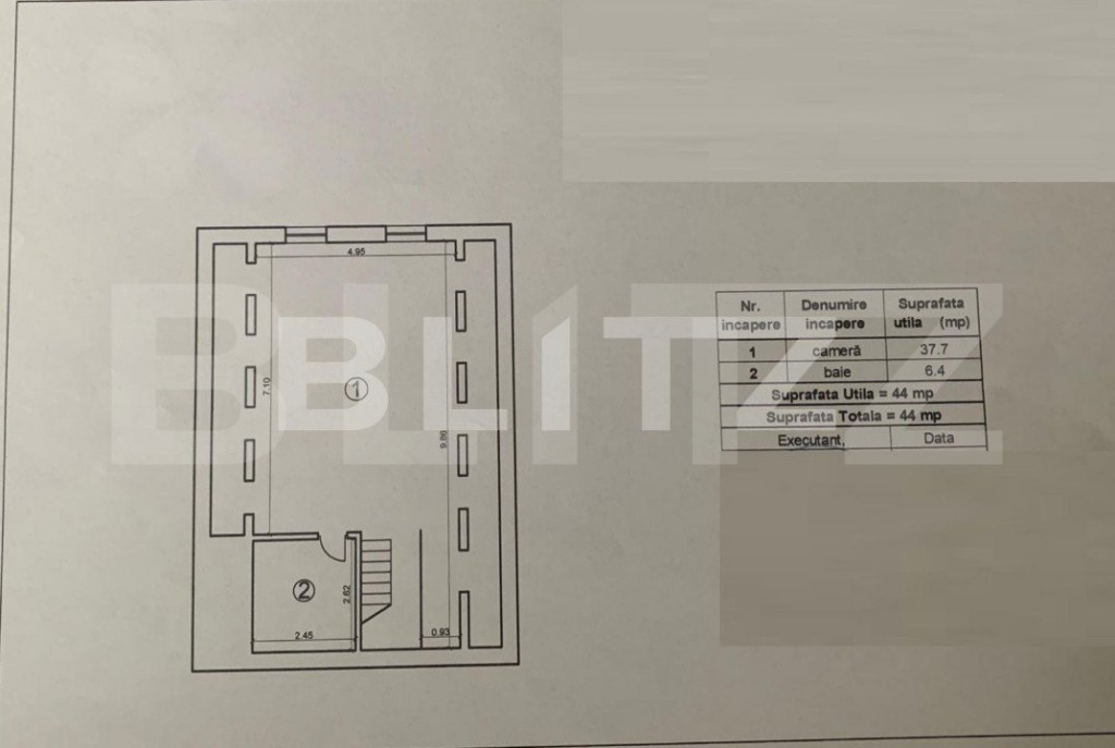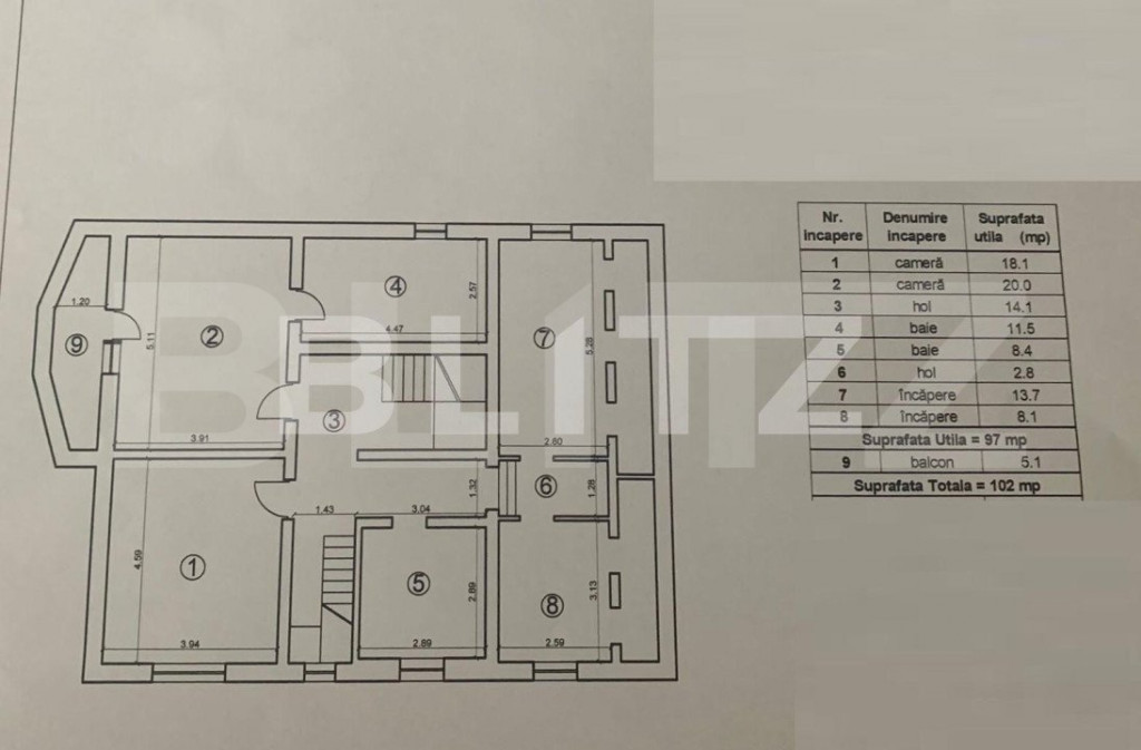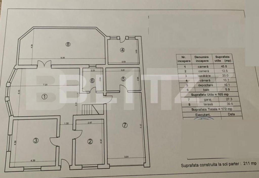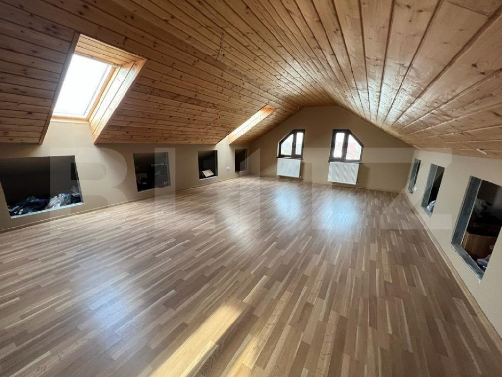 BLITZ iti propune spre vanzare o casa deosebita ce se adreseaza clientilor care pun accent pe stil si eleganta dar nu in ultimul rand pentru cei care vor liniste si siguranta. Aceasta casa se afla intr-o zona foarte buna a cartierului Stupini din Brasov. Proprietatea este amplasata pe un teren de 684 mp. Imobilul este compus din parter, etaj si mansarda, cu o suprafata utila de 246 mp la care se adauga o terasa spatioasa. Compartimentarea proprietatii este una bine impartita, desfasurata astfel: - La parter: garaj (27 mp), bucatarie mare inchisa (20 mp), living room (46 mp), dormitor/birou (12 mp), baie (6 mp), doua spatii de depozitare. - La etaj: doua dormitoare spatioase din care unul matrimonial cu balcon si baie mare (12 mp) proprie, hol, baie (8 mp), si inca doua incaperi cu diferite destinatii (14 mp respectiv 8 mp). - La mansarda: salon spatios (38 mp) cu baie (6 mp). Proprietatea a fost finalizata in anul 2010, beneficiaza de o structura foarte solida de beton armat, zidarie din caramida la exterior cat si pentru compartimentarea interioara. Acoperisul a fost realizat din capriori cu sistem de invelitoare din tigla. Bramac.Pentru dotarea si echiparea proprietatii, la interior cat si la exterior s-au folosit echipamente si materiale de cea mai buna calitate. Documentele proprietatii sunt in curs, de moment lipseste intabularea, pentru detalii suplimentare si o vizionare va rog sa ne sunati. Pentru dotarea si echiparea proprietatii, la interior cat si la exterior s-au folosit echipamente si materiale de cea mai buna calitate. Cod ofertă / ID BLITZ: P4460 Id intern: P4460