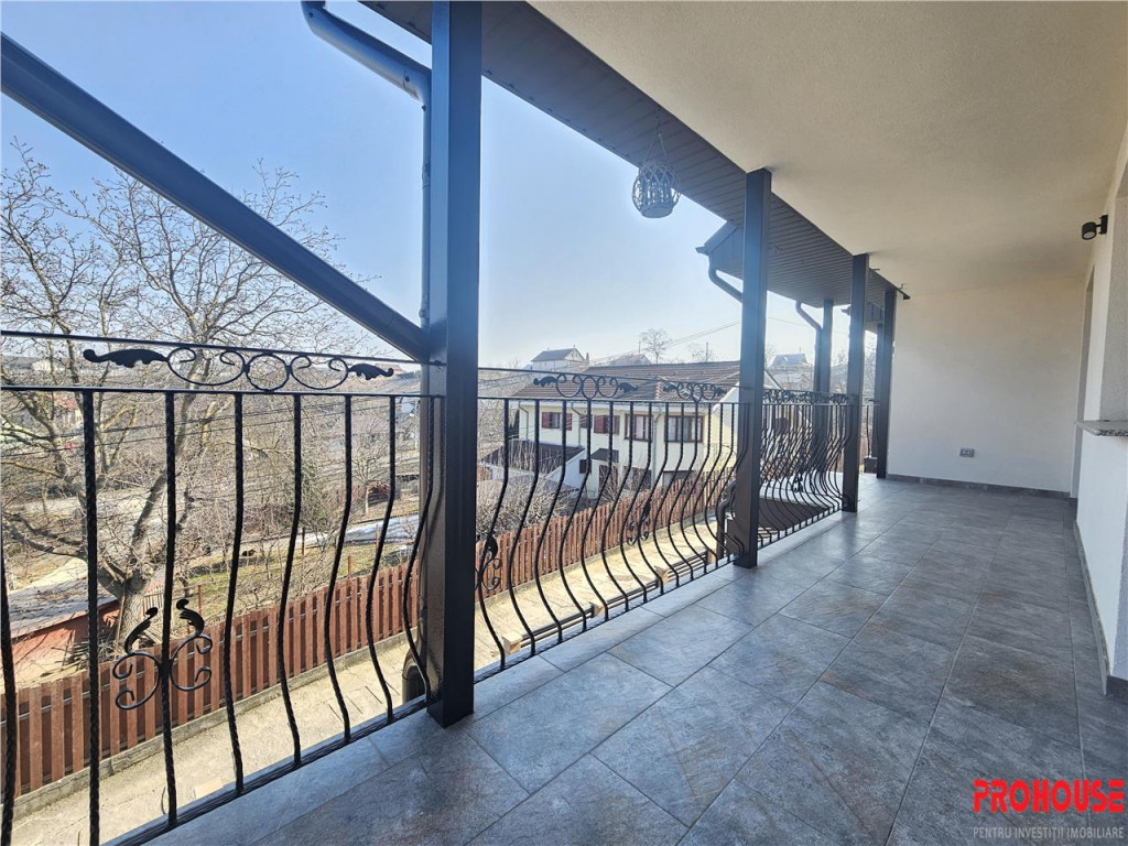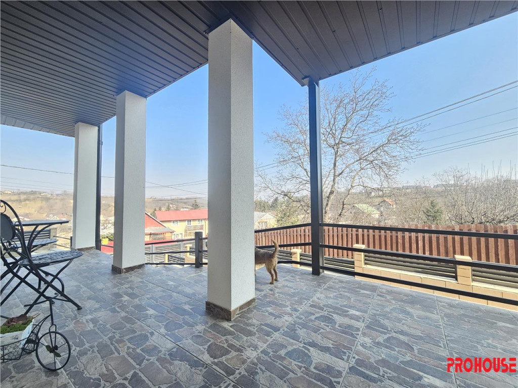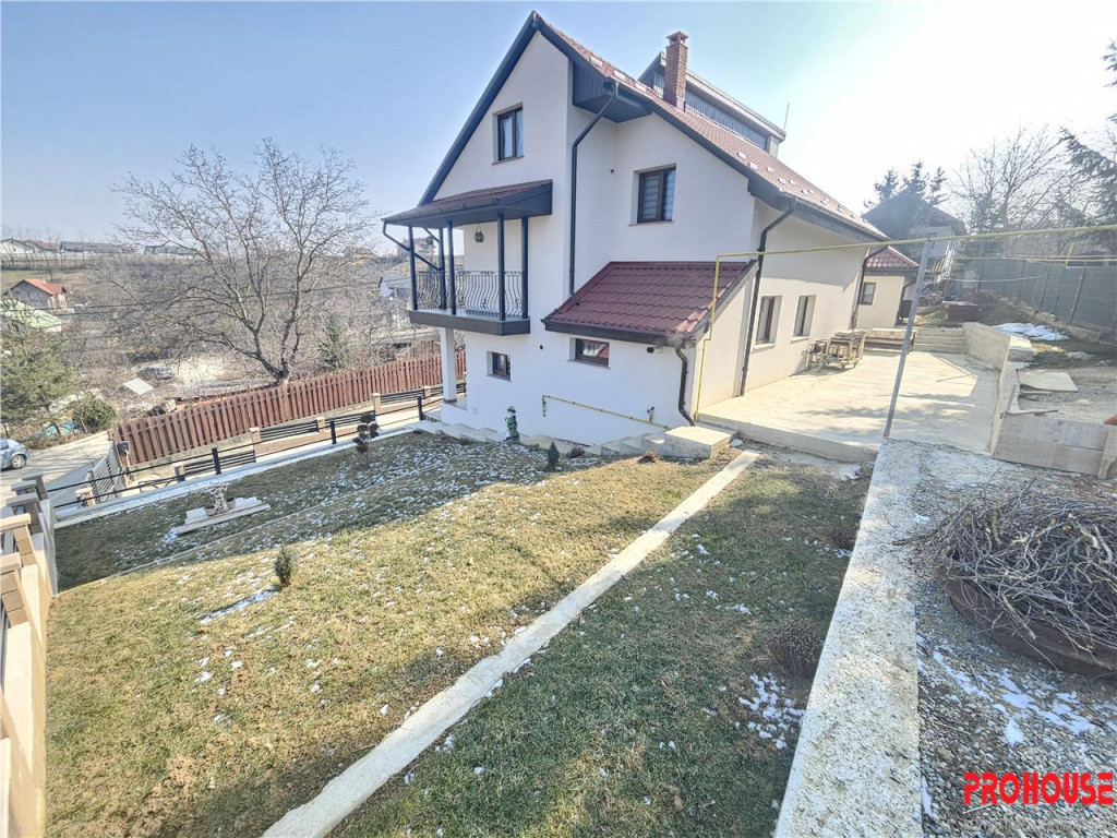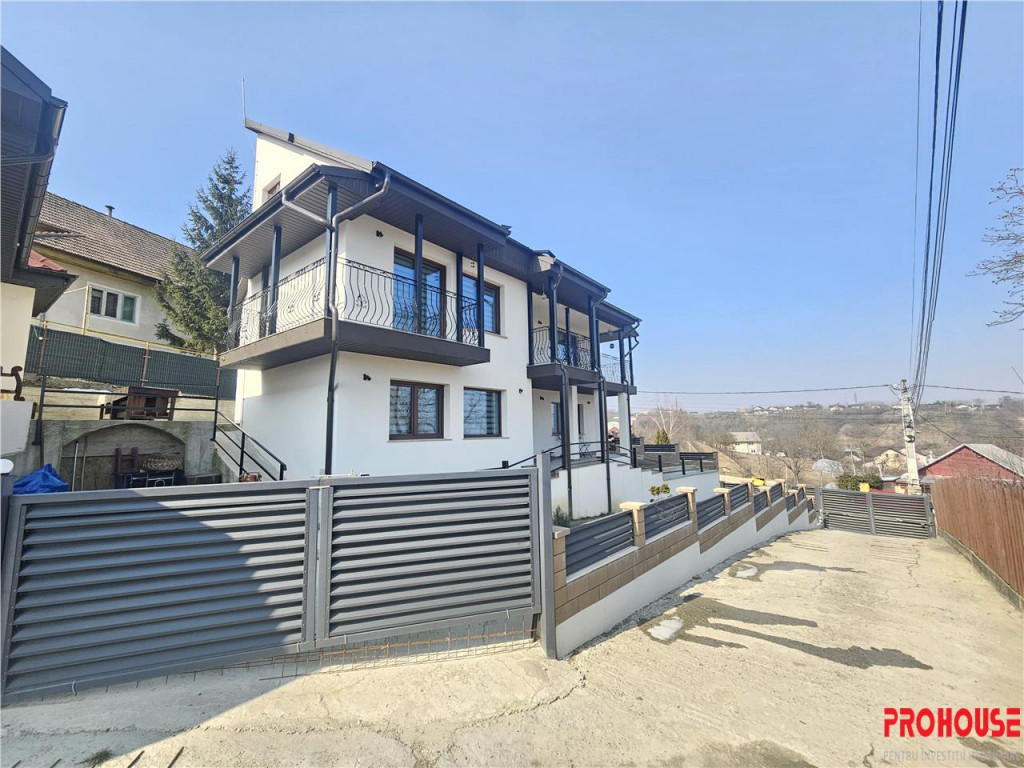 PROHOUSE propune spre vanzare, in exclusivitate, o proprietate compusa din 1 vila cu 3 nivele si o casa cu 1 nivel situate pe un teren intravilan in suprafata de 740mp. Imobilele sunt construite din caramida in anii 2000 si renovate total in 2024 cu materiale de cea mai buna calitate. Panorama excelenta si distanta relativ mica de centrul orasului (7 km, Magura Farbe) recomanda aceasta locatie ca resedinta permanenta. VILA cu 3 nivele are 230mp si este compartimentata astfel: Parter: 1 Living, 1 bucatarie cu camera tehnica,1 baie cu cada, terasa Mezanin: 2 dormitoare (birouri) cu balcon Etaj 1: 1 Dormitor mare, baie cu dus, terasa Proprietatea este racordata la toate utilitatile: curent, gaz, apa, canalizare. Accesul la proprietate se face doar de doi proprietari, pe un drum privat inchis cu o poarta cu telecomanda. CASA cu 1 nivel are 45mp si este compartimentata astfel: Parter: 1garaj 1beci Etaj: 1 Living cu acces la terasa, 1 dormitor, 1 bucatarie, 1 baie cu dus. Fiecare imobil este contorizat separat. Ambele cladiri se vand mobilate si utilate lux, asa cum reiese din fotografii. Pretul este negociabil, se accepta si variante (credit, schimb, etc.). Pentru vizionare si alte detalii nu ezitati sa ne contactati.